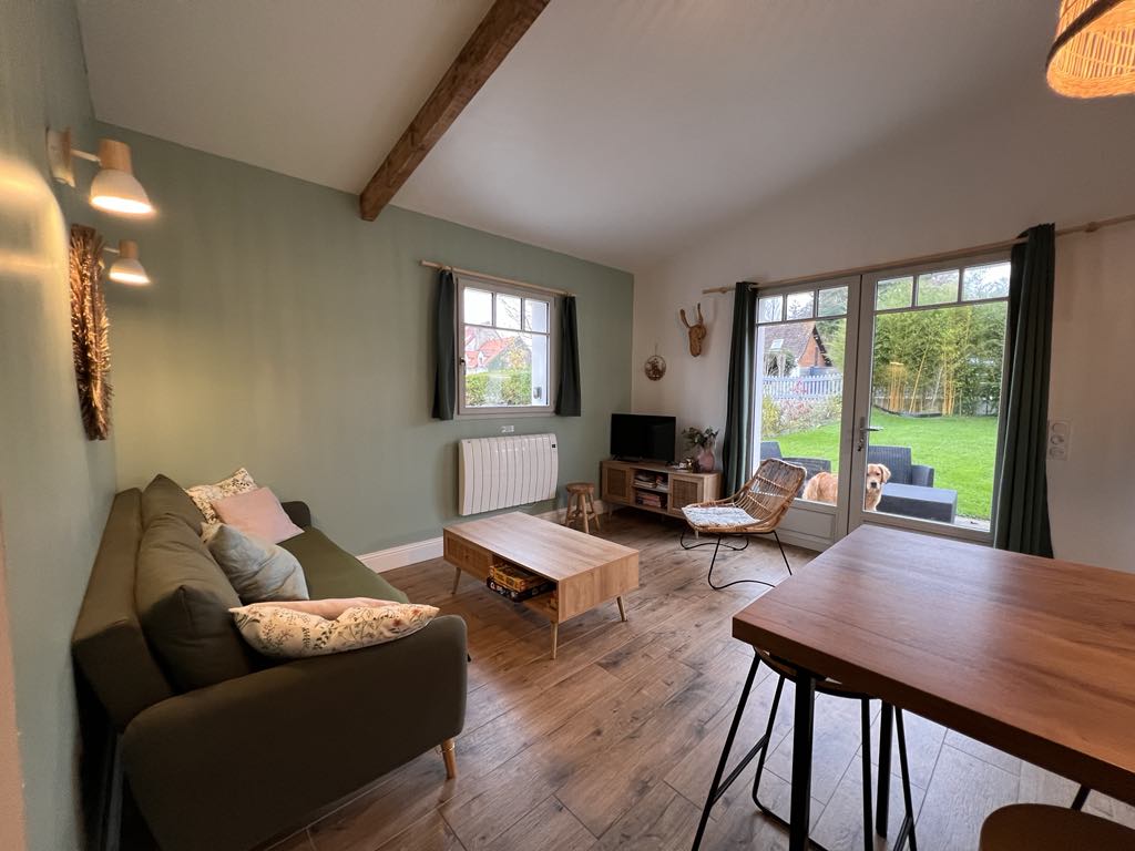 Estudio con entrada independiente, en un ambiente coqueto y "acogedor" con vistas a la terraza y al jardín. Situada en una zona tranquila, apacible, arbolada y verde. En el centro de la localidad balnearia de Hardelot. Muy buena insolación (sur/oeste). La terraza está a la disposición de los huéspedes. Cerca de tiendas, restaurantes, mar, bosque, dunas, campos de golf, centro ecuestre, tenis, carriles bici. Cerca de una estación de carga de coche eléctrico.