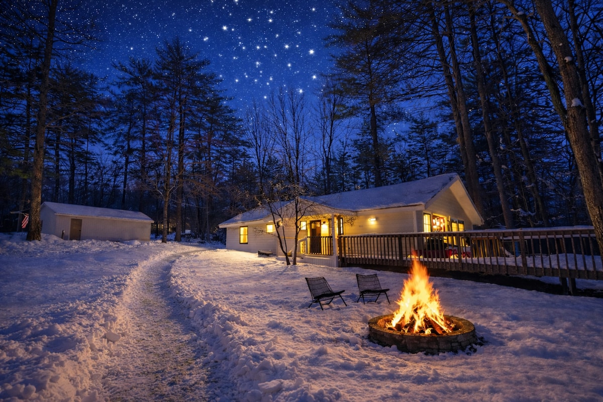 Escape to the White Mountains in this cozy, private Conway cabin-just minutes from North Conway shops, Cranmore, and the Kancamagus Highway. Perfect for families, couples, and small groups looking for a quiet retreat with easy access to skiing, hiking, and downtown fun. Seasonal Highlights ❄️ Winter ❄️ •Ski Cranmore•Attitash•Loon •Cross country skiing•Ice skating •Cozy nights by the fireplace ☀️Spring/Summer☀️ •Hike off the Kanc •Diana’s Baths •Kayaking•Swimming holes 🍁Fall🍁 •Leaf peeping
