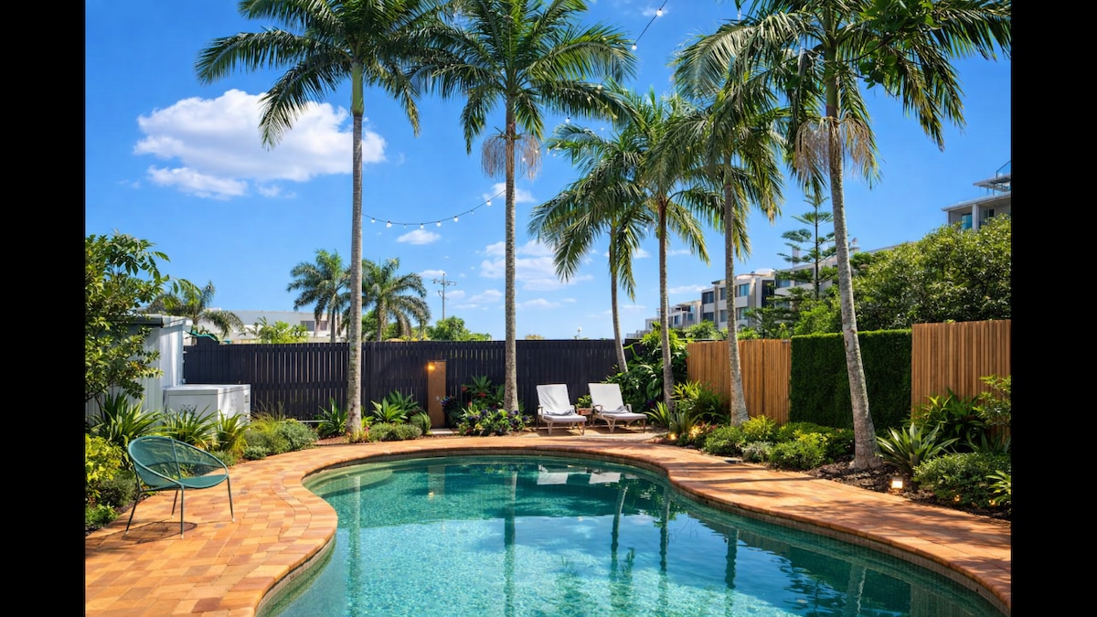 Peaceful waterfront paradise, 2 bdrms, large lounge, bthrm & seperate toilet kitchenette laundry facilities, swimming pool, pool table, canal water activities, access 2 levels of outdoor areas. Relax on the decks overlooking canal, wet a line, laze by the salt water pool, & only 5mins drive to world class beaches & airport. 3 large clubs mins drive