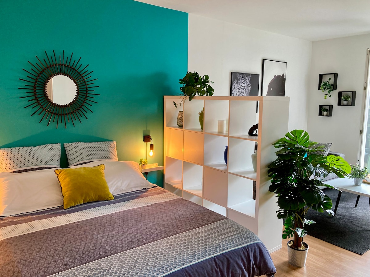 Découvrez ce grand studio décoré de façon raffinée sur le thème des tropiques. Il ouvre sur une terrasse agréable meublée. Vous disposez de la WIFI et NETFLIX. Vous avez accès à un PARKING PRIVE en sous-sol. L’appartement est situé au RDC dans une résidence calme et SECURISEE en bordure de Seine et d’un parc. Il est à 13 minutes à pied ou à 5 minutes en bus de la gare qui dessert Paris en 35 minutes. Pour aller au centre ville, vous avez le bus à 1 mn à pied ou le train à 10 mn à pied.