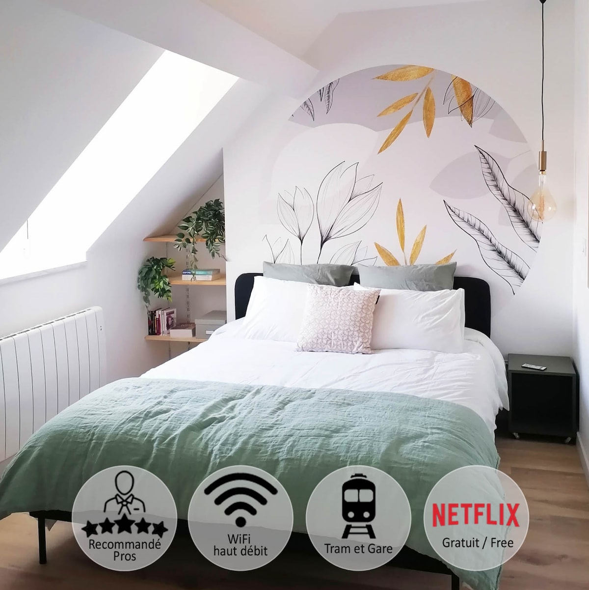 Freshly renovated & cosy apartment with 2 private bedrooms (45m2*) in a very quiet 2-level building. High quality linens & bedding, fully-stocked kitchen, spotlessly clean, 1 private parking spot with remote access, arrival in fully autonomy *There is a sitting, TV area with office in the master bedroom but no separate living room. 10min walk to the Place Condorcet with excellent bistros et bars