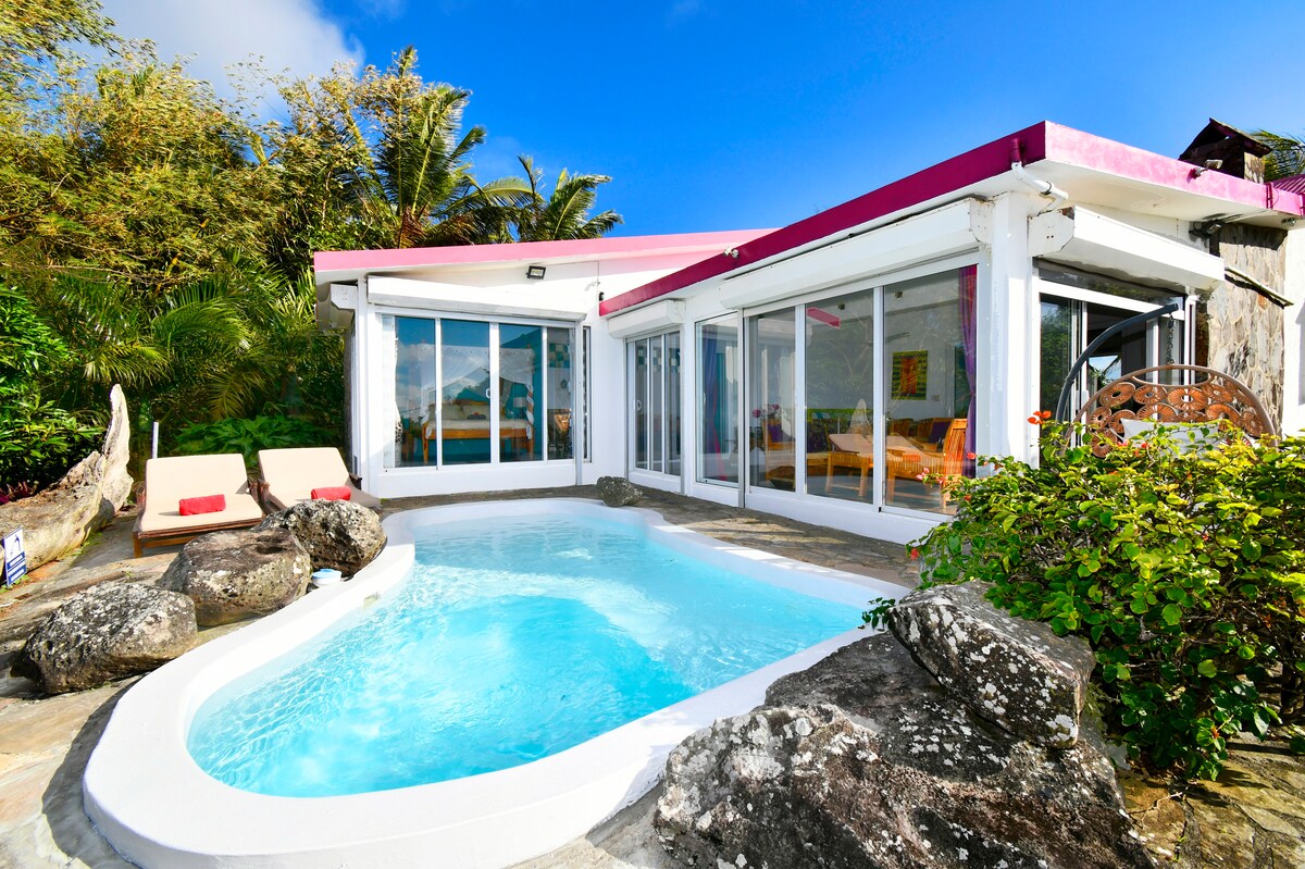 Villa Lorizon es una villa de estilo único y encantadora de 240 qm² en Rodrigues, a 1 hora de Mauricio; la villa tiene magníficas vistas al océano y está a solo 8 minutos de las hermosas playas de Graviers; Lorizon cuenta con piscina privada, aire acondicionado, wifi rápido, chimenea para noches acogedoras, sillas largas,Alexa,Siri. Todos los techos rosas que ves en las fotos son “ uno y solo Lorizon”, ¡todos tuyos incluso si solo tienes 2 años!