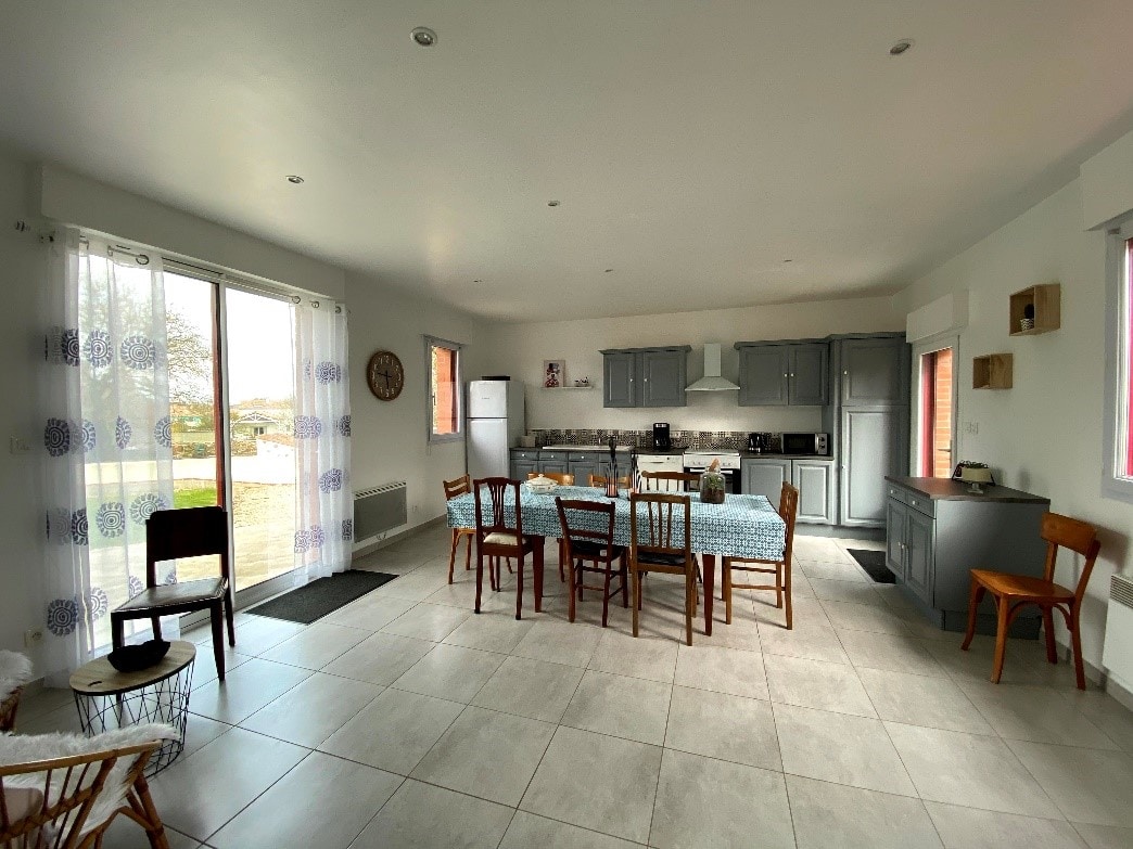 Descubre este encantador alojamiento, moderno y nuevo de más de 100 m², ubicado en un antiguo cuartel de Gendarmería, ahora situado encima de la Casa Médica de Vezins. 3 dormitorios, 6 camas, sala de estar luminosa, cocina equipada, baño, inodoro separado. Terraza con plancha. fibra, aire acondicionado, lavadora, secadora incluidos. Se proporcionan sábanas y toallas. Comodidad y funcionalidad para una estadía agradable.