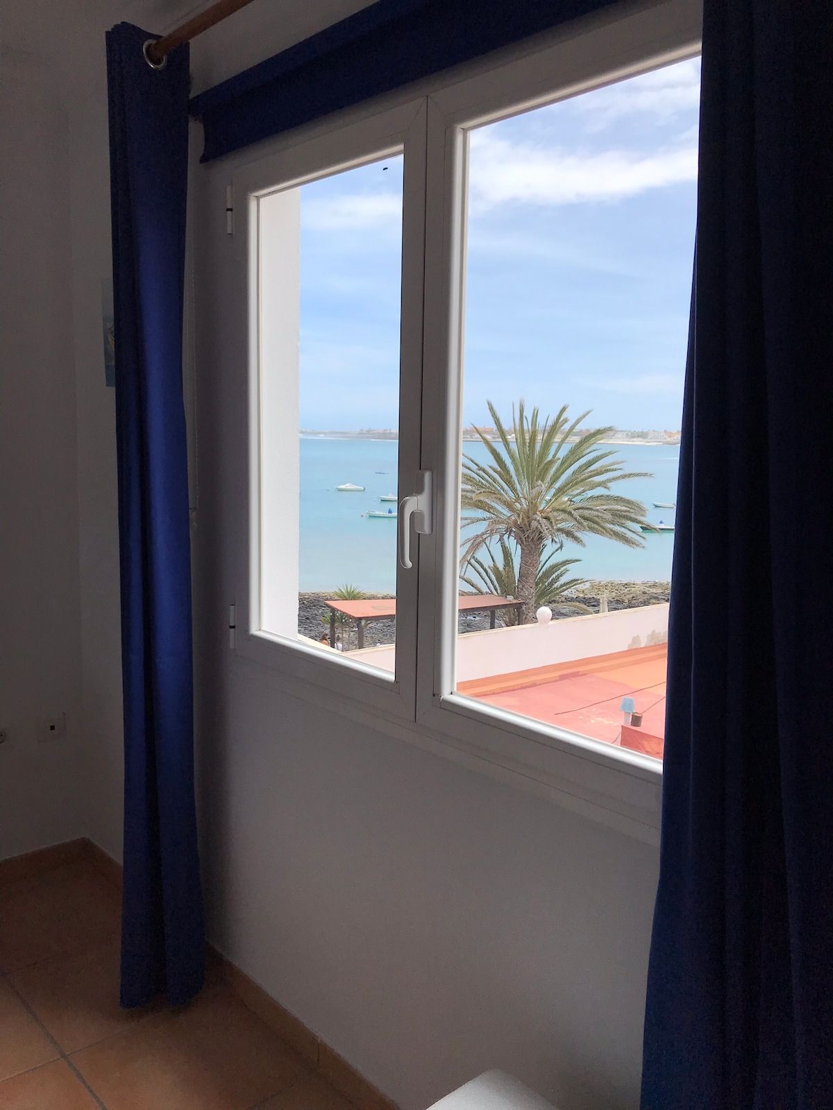 Ocean Breeze El alojamiento que te hará sentir como en tu casa y en un barco flotando en el mar, gracias a sus preciosas y grandes ventanales disfrutaras cada dia de un almanecer increible con vista al mar y a las islas (lanzarote y lobos) donde, el balcon te permitirá disfrutarlo mientras estas bebiendo un café. La ubicacion es ideal, a la vez esta en una zona tranquila donde se escucha la unica melodia de las olas y a la vez esta cerca de todos los restaurantes, bares y tienda de Corralejo.