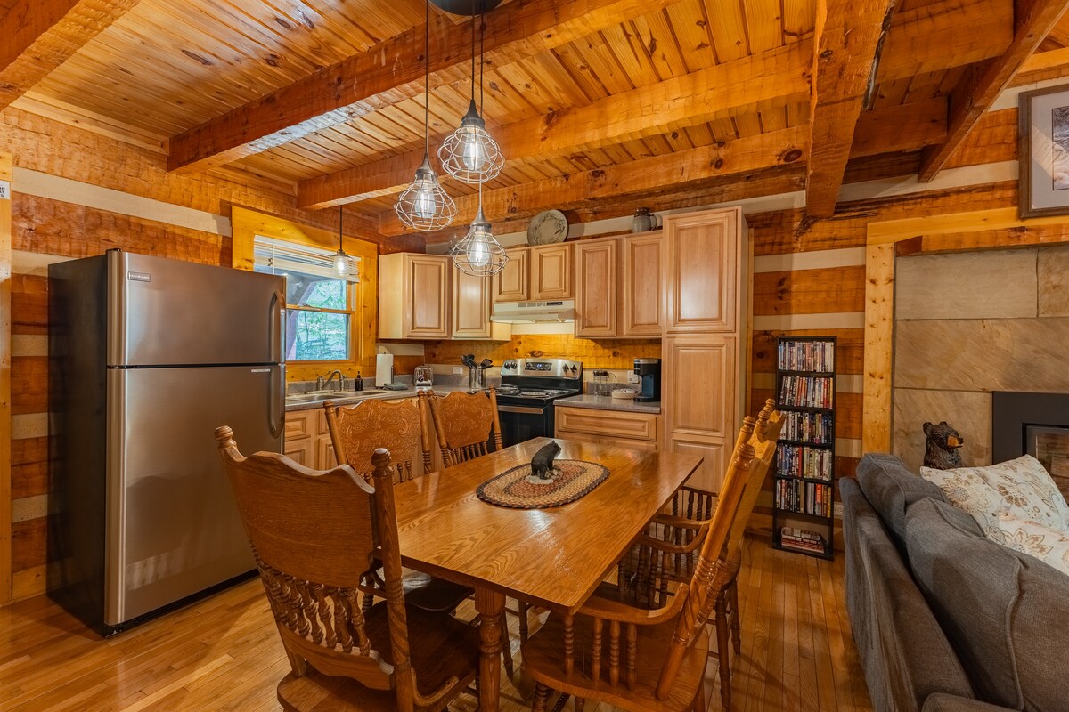S'more Time at Hidden Creek es un refugio tranquilo para los visitantes de Smoky Mountain que quieren evitar las multitudes en Gatlinburg y Pigeon Forge. Está separado de las casas vecinas por el bosque, pero eso no significa sacrificar la comodidad. La cabaña se encuentra junto a un arroyo de montaña que normalmente se puede escuchar a través de ventanas abiertas por la noche, mientras visitas con amigos alrededor del anillo de fuego junto al arroyo, o mientras exploras el corto sendero para caminar.