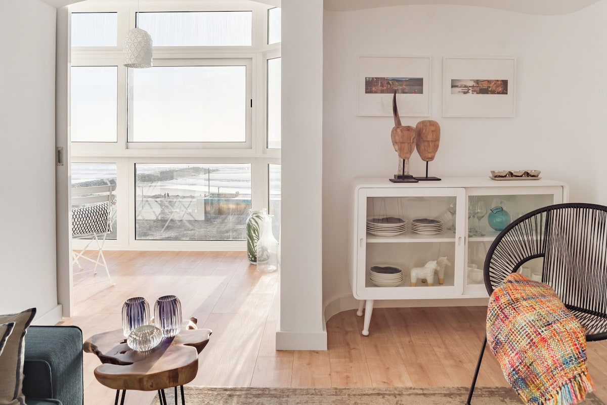 Surf en el mar y la ciudad: apartamento en la playa con aire acondicionado