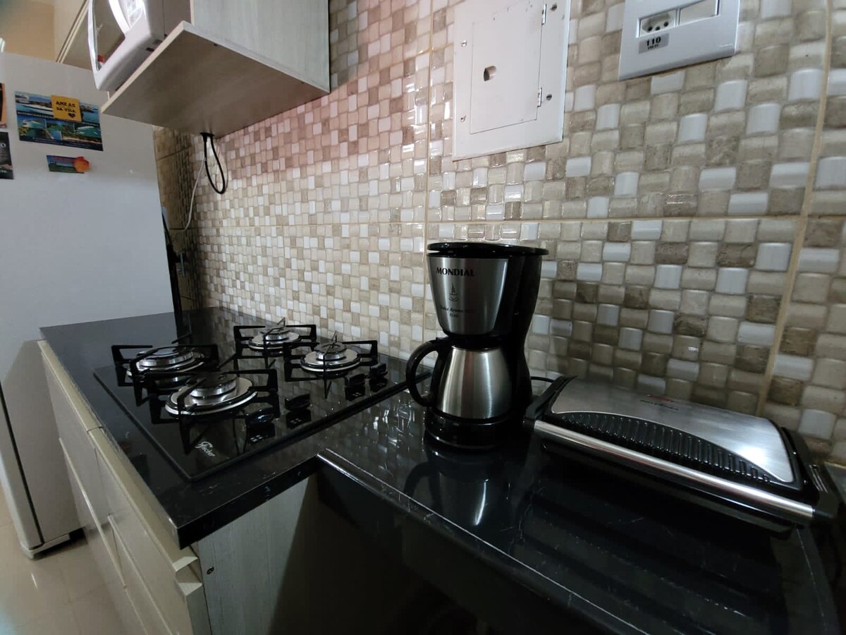 El estudio 409 está encantador. Se encuentra en el cuarto piso. Con tonos rosas, creando un ambiente romántico y delicado. Hermosamente decorado, aprovechando cada espacio, con una planificación de muebles finamente terminada. Tiene una vista privilegiada, área gourmet con barbacoa, cocina completa, televisión inteligente, aire acondicionado, cama tamaño queen para mayor comodidad. El condominio tiene zona de ocio con piscina en el quinto piso. Tenemos estacionamiento. ATENCIÓN NO PROPORCIONAMOS SÁBANAS Y TOALLAS.