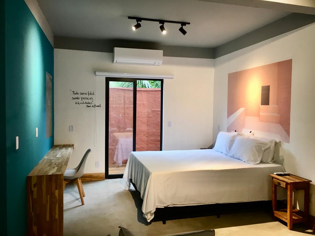 Charmosos estúdios self catering na linda praia do Prumirim. Entrada independente, pátio privado, cozinha totalmente equipada, cama queen size de alta qualidade, sala de estar confortável. Tudo projetado com qualidade, conforto e estilo. Grandes janelas panorâmicas que vão fazer você se sentir entre as copas das árvores! Este é um lugar mágico para quem procura uma fuga romântica à beira-mar conectando-se à natureza sem comprometer seu conforto. Tudo meticulosamente limpo, sanitizado e seguro!