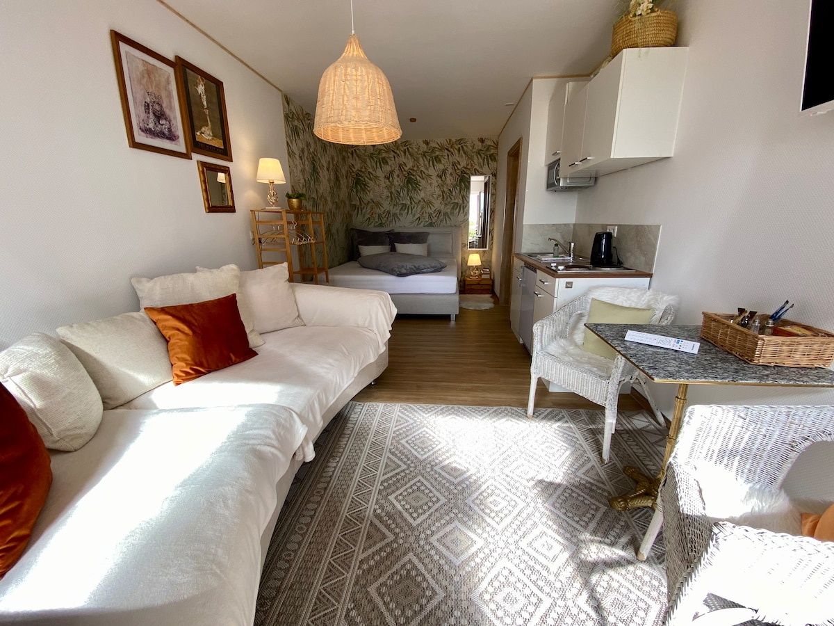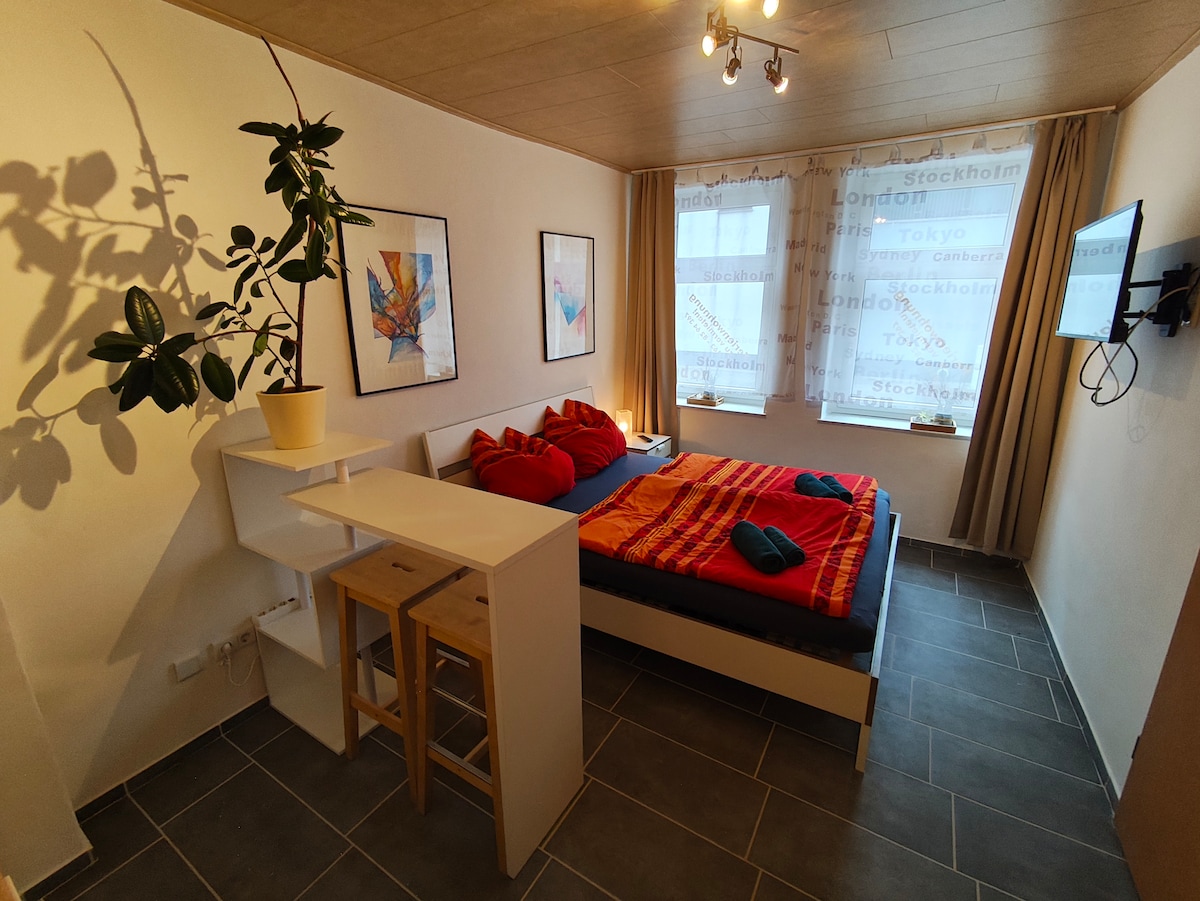El estudio HUGO ofrece todo lo que el corazón de un turista desea: situado en una zona tranquila en Georgengarten, a menos de un kilómetro de la Bauhaus, las casas maestras y el granero, y a solo unos kilómetros del centro de la ciudad. Ya sea solo para un viaje de fin de semana para explorar la ciudad o para una estancia más larga, por ejemplo, mientras trabaja en Dessau, puede vivir y relajarse en el verde barrio de Ziebigk.