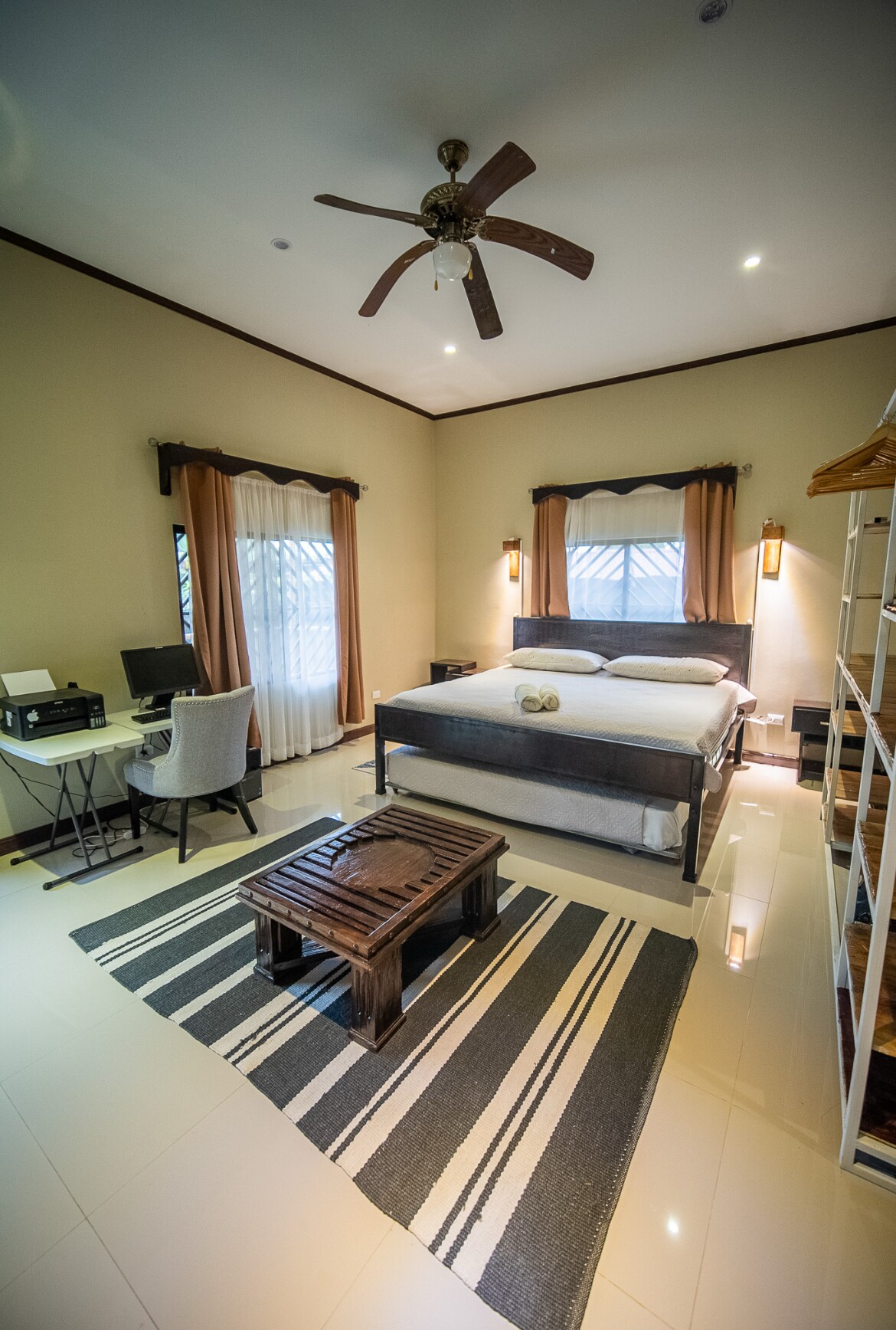 Accesible home just about 100 meters of main road. Sleeps 5. the second bedroom has a twin sizebed and a full-size bed. The master bedroom has an AC that cools the entire home. The second bedroom has a ceiling fan. Kitchen is equipt with all appliances, including small ones like air fryer, rice cooker, blender, and ninja bullet.