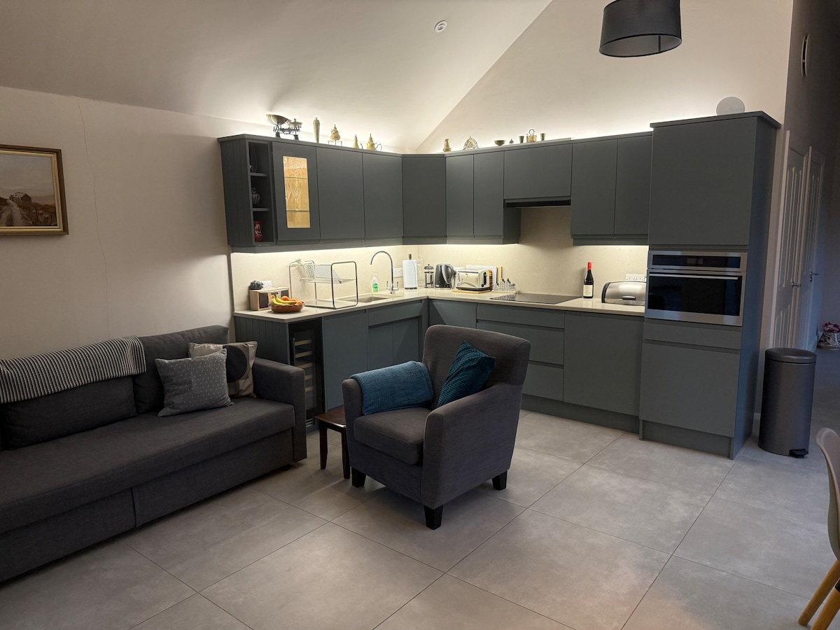 Anexo luminoso, moderno y accesible para sillas de ruedas en Bangor West, County Down, ideal para escapadas costeras, viajes diarios o estancias de trabajo. De diseño abierto y espacioso, con un dormitorio doble, sofá cama flexible para dormir, calefacción por suelo radiante, ducha a ras del suelo, lavadero, Internet de alta velocidad, televisores y una cocina americana bien equipada. Patio privado y jardín compartido. A minutos del camino costero, puerto deportivo, atracciones familiares y a 10 minutos a pie de la estación de Bangor West con conexiones fáciles a Belfast.