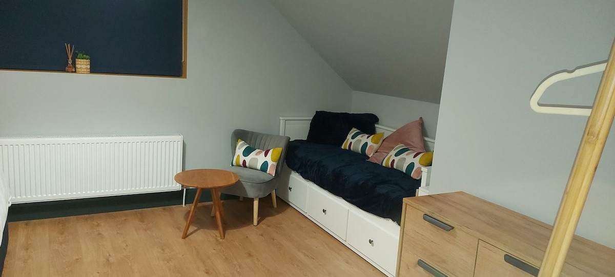 Nuestro alojamiento es un garaje reconvertido, 2 dormitorios y cocina con comedor, baño con ducha. Nuestro jardín es perfecto para los niños, ya que tenemos una casa del árbol/tobogán y cama elástica. Estamos a 10 minutos en coche de Tullamore co. Offaly, donde tienes el Gran Canal, Greenway y a 5 minutos en coche del pueblo de Clonaslee, donde está el corazón de las montañas Slieve Bloom, hermosas para largos paseos, el lago Brittas y Glenbarrow. El castillo de Kinitty está a 19 km de nuestro alojamiento y el parque Lough Bora está a 24 km, todo perfecto para pasar el día.