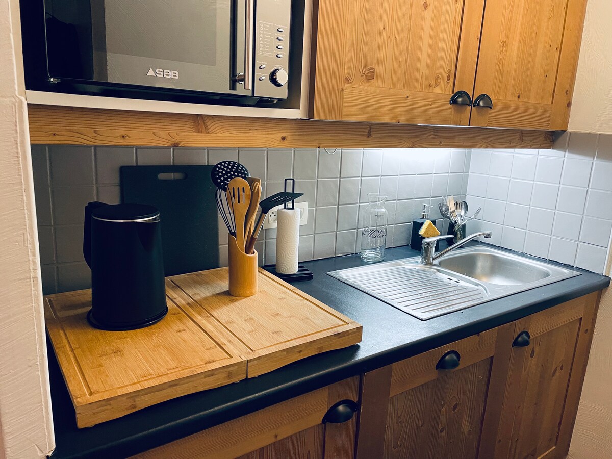 Residencia Turística *** Le Splendid T2 36m2 reformada - Gde habitación cocina /sala de estar, sofá cama de 2 plazas. Cocina nueva horno, microondas, placas, refrigerador, Tassimo. Habitación cama 160x200 , 1 cama plegable, cuna armario de pared. SDB Ducha +asiento, lavadora. TV +wifi Se proporciona ropa de cama. Sur -1 piso, ascensor. Estacionamiento gratuito, acceso directo Parc des cures Thermales, A 5 minutos a pie del centro, tiendas, supermercados y Casino. Estación Collet d'Allevard y Pleynet a 20 minutos en automóvil o autobús