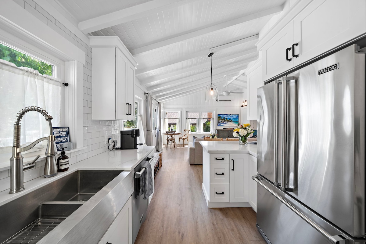 ¡Disfruta de esta espaciosa casa de campo de 2 dormitorios y 1 baño, hermosa y completamente remodelada! Refréscate en este entorno luminoso y colorido diseñado profesionalmente para tu comodidad. Incluye aire acondicionado nuevo en todas partes, zona de barbacoa comunitaria, tumbonas, toallas de playa, sombrilla y una plaza de aparcamiento reservada. ¡La ubicación perfecta! A solo 2 minutos a pie de las famosas playas de Laguna y del corazón de Laguna Beach. En esta fantástica ubicación podrás disfrutar fácilmente de todo lo que ofrece Laguna. LA FELICIDAD TE ESPERA