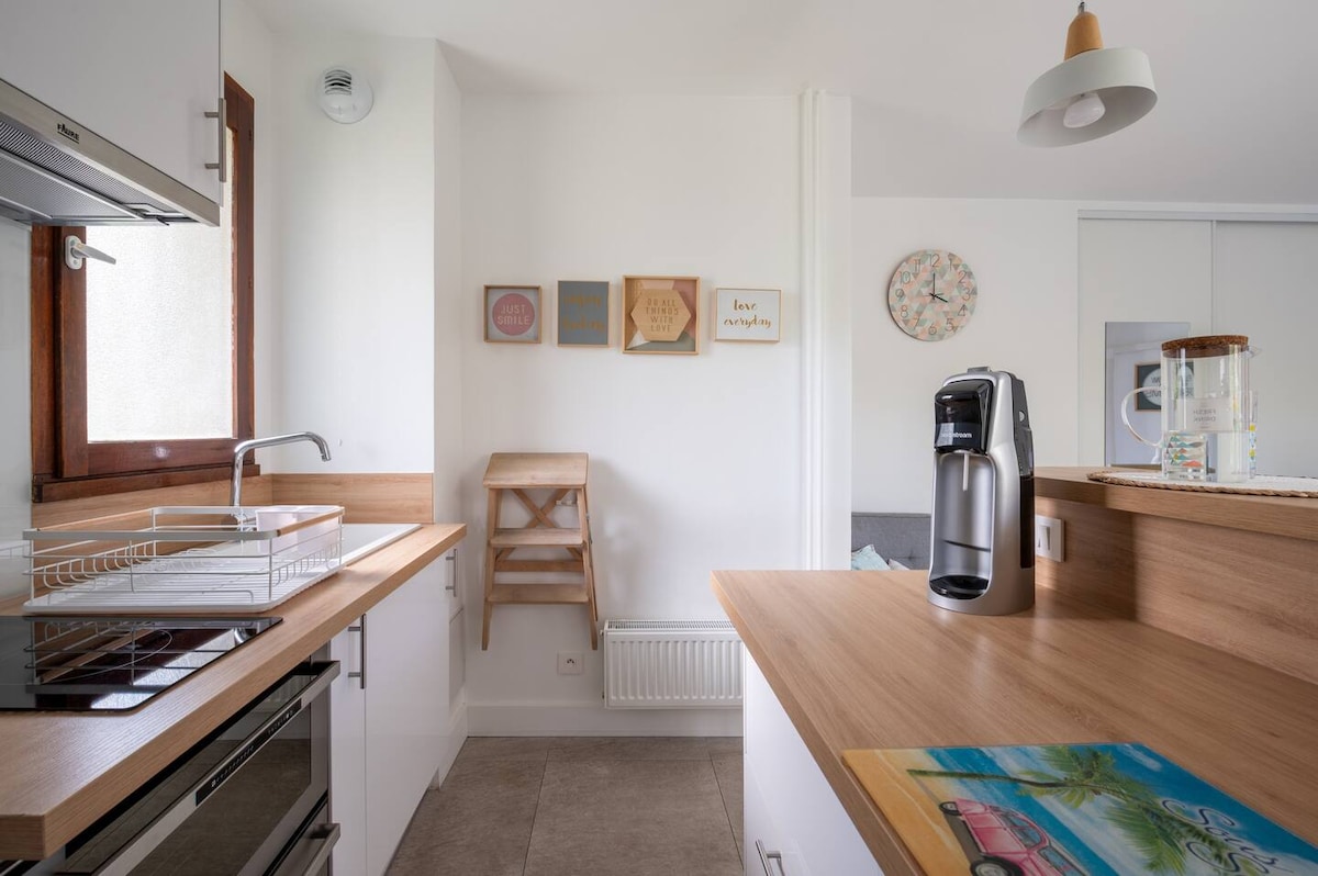 The Maisonnette: acogedor apartamento de 33 m² en planta baja con terraza privada y jardín, ideal para familias. Edificio tranquilo en el residencial North Créteil, cerca de Maisons-Alfort. 🐶Se admiten mascotas 🐾 A solo 7 minutos a pie de la línea 8 del metro (Maisons-Alfort – Les Juilliottes), a 3 minutos de la A86/A4. Bastilla: 25 min. Tiendas cercanas. Estacionamiento gratuito en la calle. Dormitorio (cama doble de 140 cm), baño con ducha/WC. Sala de estar: cocina equipada, comedor, sofá cama (capacidad para 2 personas). Segundo inodoro separado. TV de 40", wifi de alta velocidad.