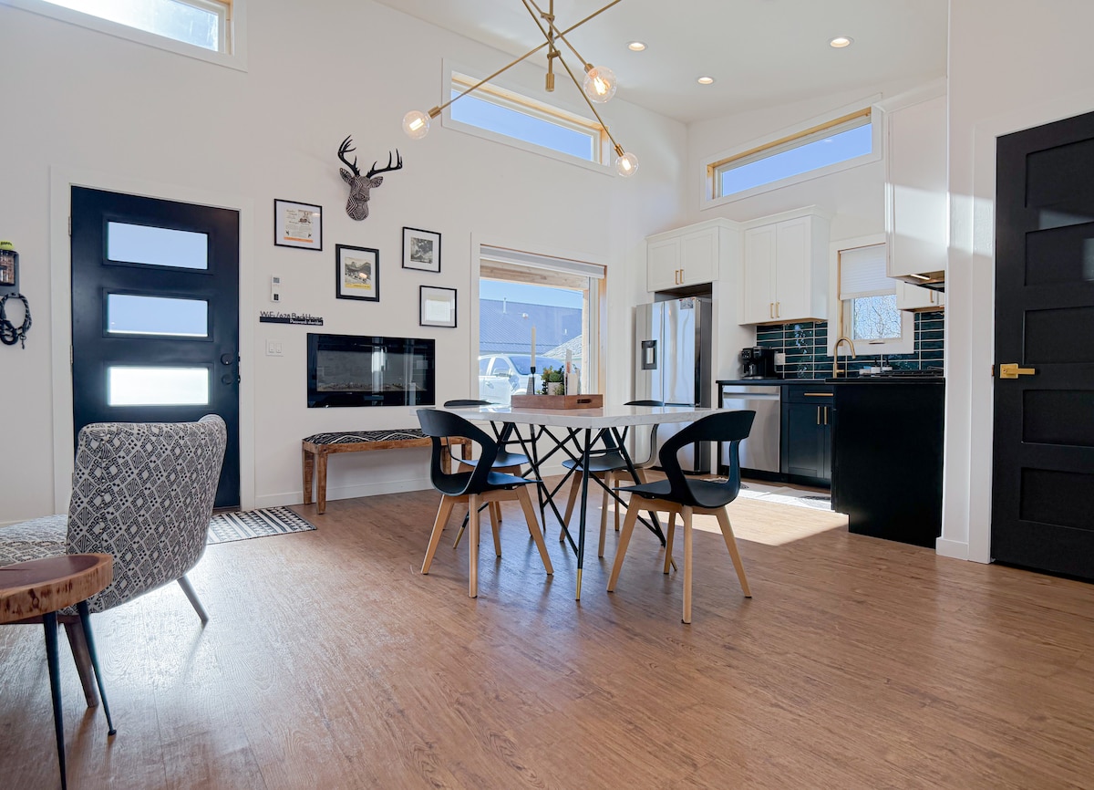 Si puedes imaginar una escapada en una casa pequeña de diseño único que está construida en más de 60 acres de paisaje abierto e impresionante, entonces has capturado un vistazo de este raro hallazgo. Esta hermosa casa pequeña es toda tuya para disfrutar de comodidades como una puerta de garaje de vidrio que se puede abrir para experimentar la naturaleza desde la mesa de tu cocina o una chimenea para acurrucarte cuando hace frío. Puedes disfrutar de un café por la mañana desde tu terraza privada y mantener los pies calientes en invierno con suelos radiantes.