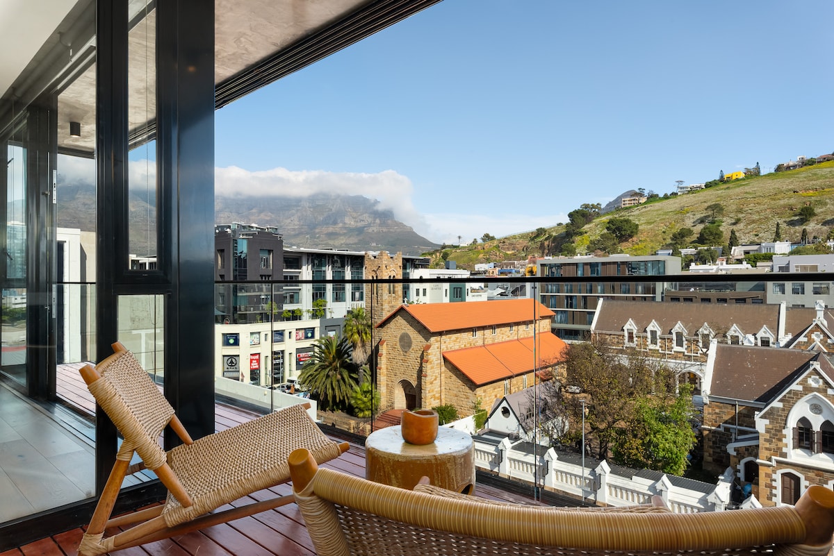 Disfruta de las vistas de la montaña de la Mesa en una azotea moderna