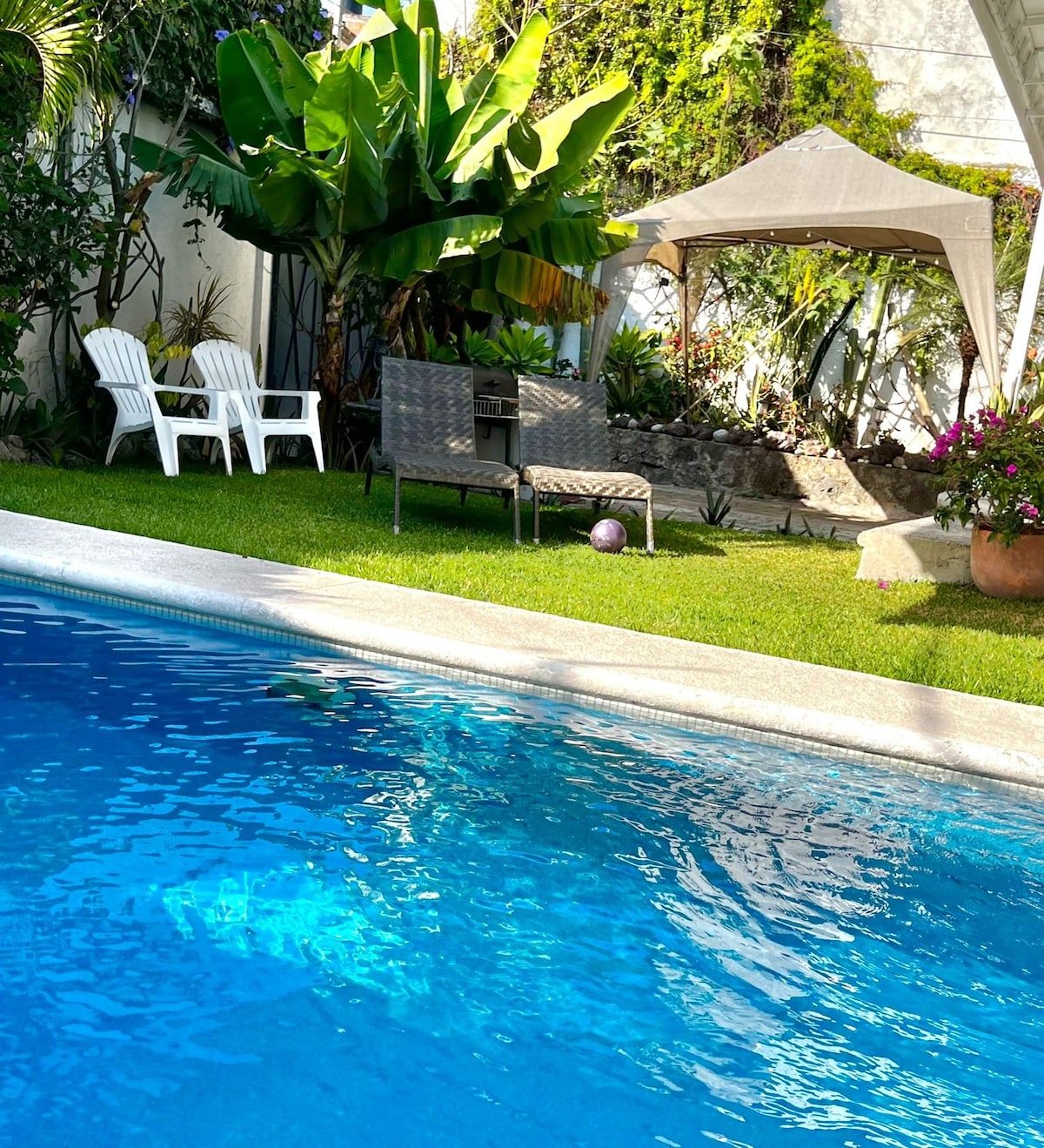 Ven a disfrutar del clima de Morelos. Hermoso bungalow ubicado en una zona residencial, a sólo 3 minutos del Centro de Cuernavaca. Es un bungalow independiente, dentro de una propiedad donde hay una casa. En las áreas comunes hay alberca, estacionamiento, internet de alta velocidad y una vista inmejorable. La alberca y jardín son privados, de uso exclusivo para ti y tus acompañantes. La alberca no cuenta con calefacción. Ideal para personas que busquen un espacio tranquilo y de relajación.