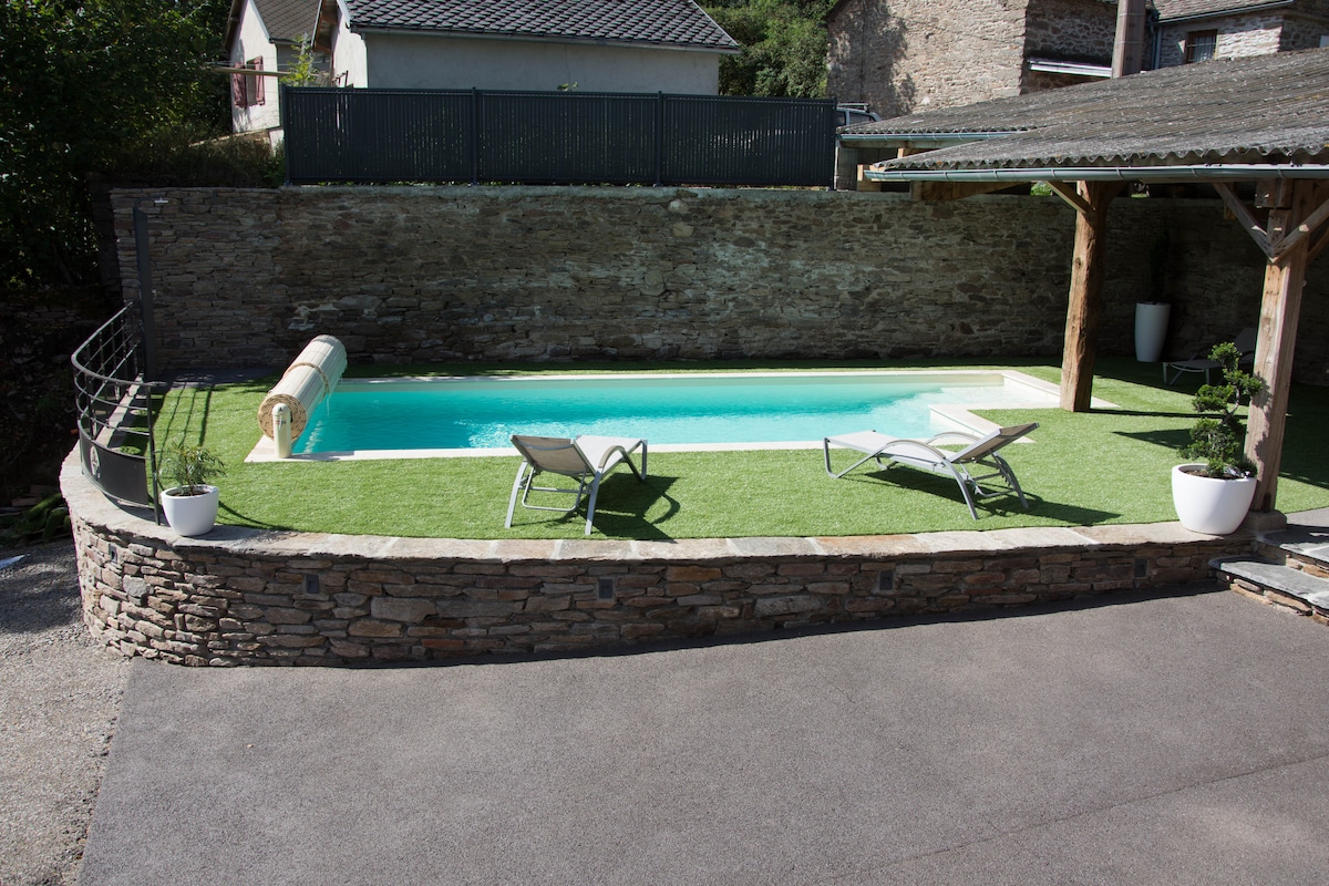 ¡Flechazo garantizado! En el parque regional de los grandes Causses, esta cálida casa de campo para 6 personas (hasta 8 personas) le dará la bienvenida. Amantes de la naturaleza o que necesiten recargar las pilas lejos del ajetreo y el bullicio, ¡están en el lugar indicado! Un lugar propicio para el bienestar con unas vistas maravillosas del valle. ¡Para el máximo relax, una sauna privada! ¡Hay senderos que parten de la casa y, para refrescarse en verano, bañarse en los lagos de Lévezou o en el Tarn es un verdadero placer!