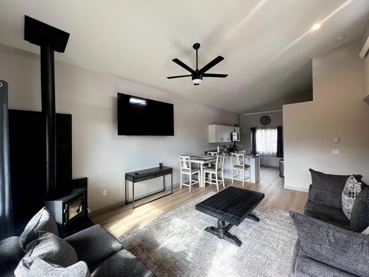 Imagina una cabaña con jacuzzi de madera y cama tamaño king. En una calle sin vecinos en una ciudad de montaña sin descubrir en la base de impresionantes montañas de 14 000 pies. Una cocina abastecida para preparar comidas, cenas al aire libre en el patio. Luz natural entrando en la casa todo el día. Las puestas de sol más vibrantes que jamás hayas visto, por la noche las estrellas te envuelven como nunca antes y una terraza en la azotea para disfrutar del espectáculo de la naturaleza. Disfruta de la noche junto a una de las chimeneas con una película, escuchando discos de vinilo o el crepitar del fuego.