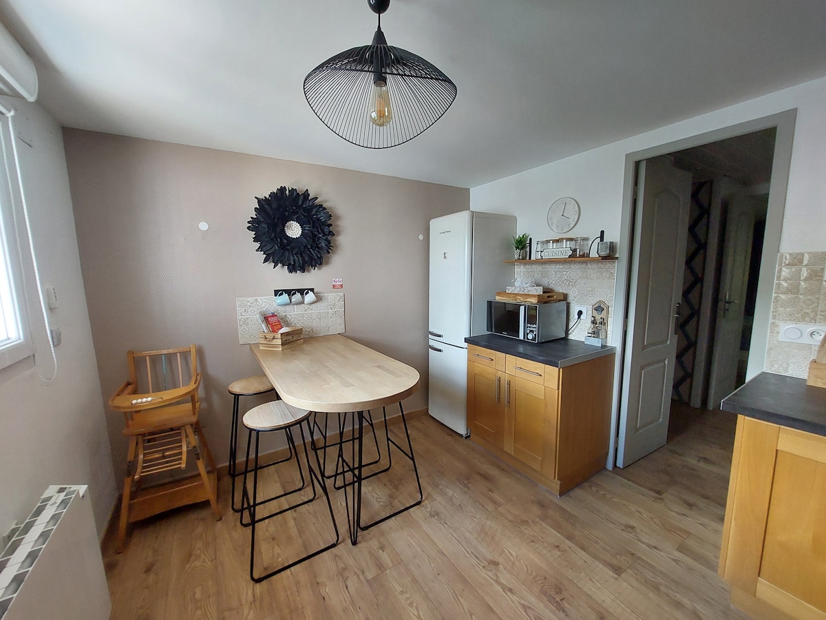 Dependencia de 40 m2 con espacios abiertos, cómoda, con una decoración cuidada. Situado en una propiedad de 6000 m2, en la que encontrará 2 casas rurales y una casa principal. Puede alojar hasta cuatro personas y da acceso directo a la piscina. Totalmente reformado y climatizado, con una pequeña cocina totalmente equipada. Cuarto de baño con bañera en isla. Plazas de estacionamiento en la propiedad con posibilidad de cargar puntualmente un vehículo eléctrico.