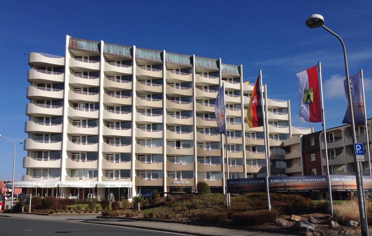 Para sus vacaciones, tiene a su disposición un apartamento luminoso, agradable y totalmente amueblado para 1-4 personas (40 m²). Se encuentra en el segundo piso del edificio de apartamentos Lord Nelson, con vistas al mar del Norte y al mar Báltico oriental (sol de la mañana) con balcón y aparcamiento subterráneo. No se permite fumar ni mascotas en el apartamento. La limpieza final (45 €) y el impuesto turístico se pagan en el apartamento.