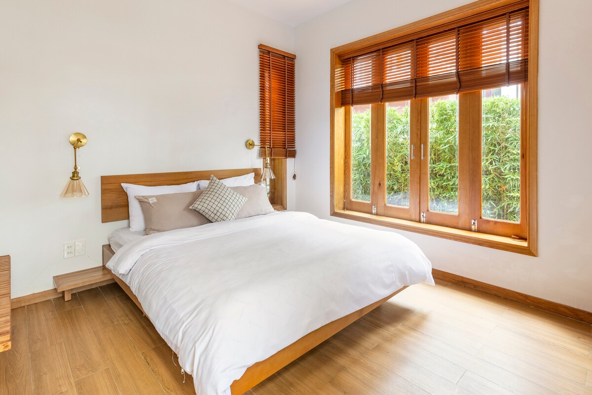 Una casa de madera estándar para 6-8 personas ubicada justo en el centro de la ciudad de Da Lat 🍀3 dormitorios, todos tienen ventanas y balcones con 5 camas tamaño queen de 1,6 m x 2 m, 4 baños 🍀Salón conectado a la cocina al estilo antiguo de Da Lat con sofá, nevera, horno microondas, utensilios básicos de cocina… 🍀1ª planta: cocina, sala de estar, 1 aseo, patio con barbacoa y 1 dormitorio con aseo privado. 🍀Segunda planta: 2 dormitorios con baño privado.
