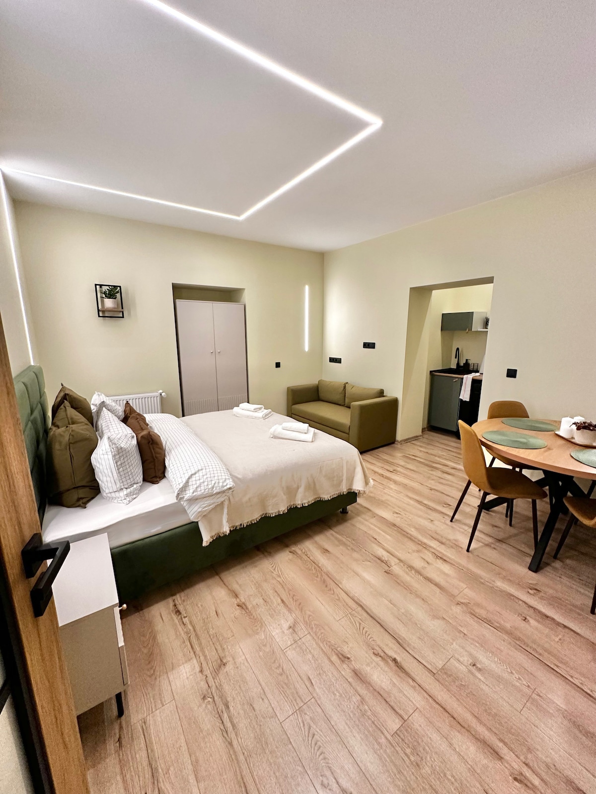 Nuestro departamento está a pocos pasos de Piata Mare (Grand Square) en Sibiu. Ubicado en un edificio histórico de 200 años de antigüedad, cuenta con un acogedor dormitorio, sala de estar con TV inteligente (Netflix), wifi rápido y cocina totalmente equipada con cafetera, estufa y lavadora. La calefacción central mantiene las cosas calientes en invierno y el aire acondicionado está disponible durante el verano. Una pequeña terraza privada agrega encanto adicional, perfecta para relajarse después de un día explorando la ciudad.