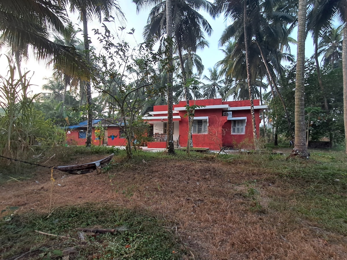 Escondida en el abrazo de la naturaleza, Tara en Karkala ofrece una escapada de la vida de la ciudad. Rodeada de bosques y campos de arroz, pinta una imagen panorámica perfecta. La casa diseñada con un ambiente rústico y antiguo, pero con comodidades modernas, hecha de materiales locales, se complementa con sus alrededores, lo que te hace sentir en paz. Despierta con el sonido de los pavos reales por la mañana. Detrás de la casa, un espacioso jardín y un estanque para pasar las noches haciendo pizza y perderse con la naturaleza.