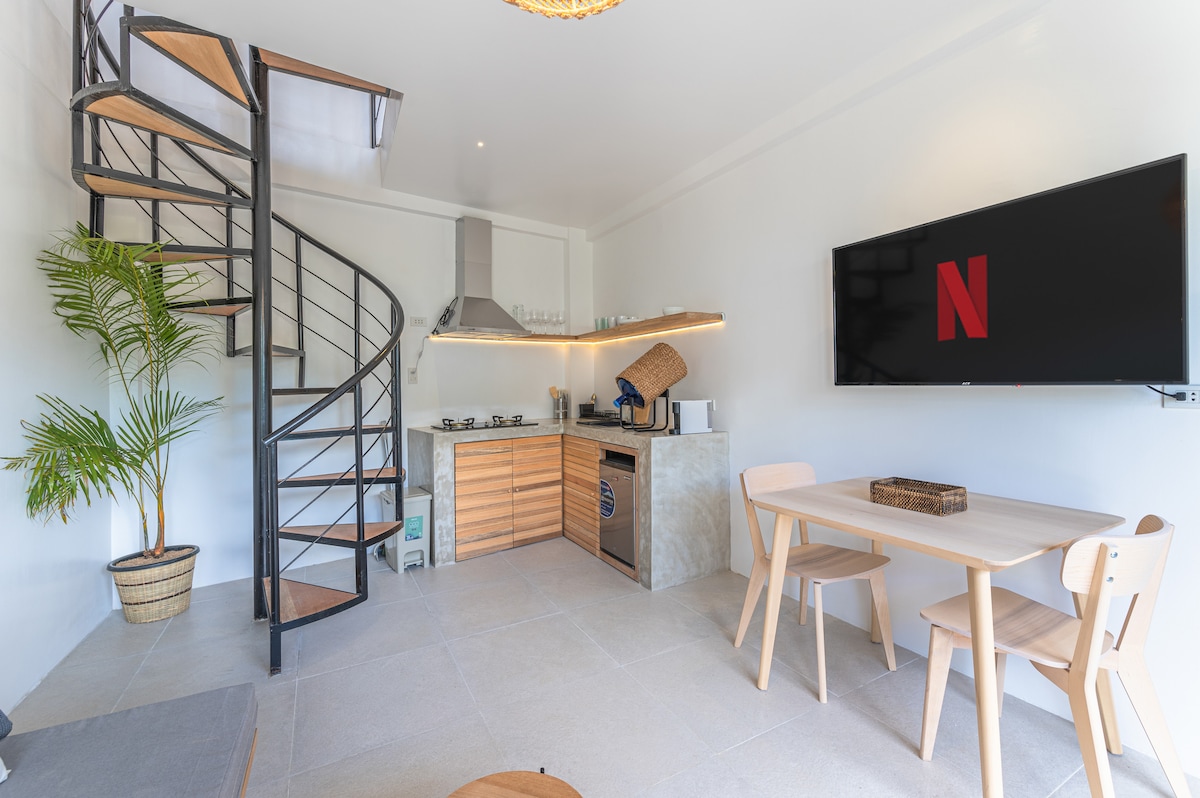 Un loft de 150 metros cuadrados con 3 dormitorios, 3 baños y un hermoso espacio abierto con una cocina totalmente amueblada, un comedor y sala de estar y una terraza, todo en el corazón de la carretera turística General Luna en la hermosa isla de Siargao. A poca distancia a pie de todos los cafés y restaurantes más modernos y de moda de General Luna. A menos de 100 metros de la playa y a pocos minutos a pie del muelle, donde puedes reservar tu excursión para descubrir todas las islas de los alrededores.