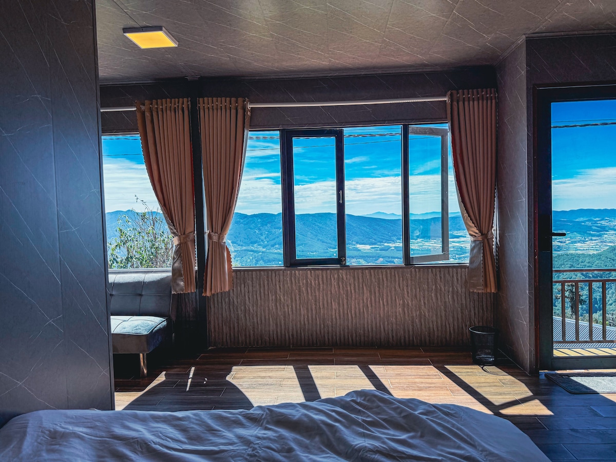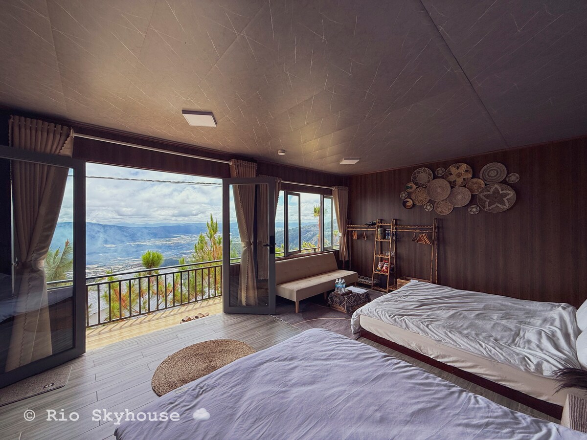 La habitación en Rio Skyhouse ofrece un espacio tranquilo y acogedor, ideal para la curación y la relajación. Grandes ventanales con vistas al valle y a las montañas, acogedora luz natural, por la mañana se pueden ver las nubes y el amanecer desde la habitación. La habitación está equipada con una cama grande, colchón suave, cortinas gruesas, silla relajante y estante colgante. Adecuado para parejas o viajeros que quieren dejar temporalmente la vida ruidosa, encontrar el equilibrio entre la naturaleza y Cau Dat.