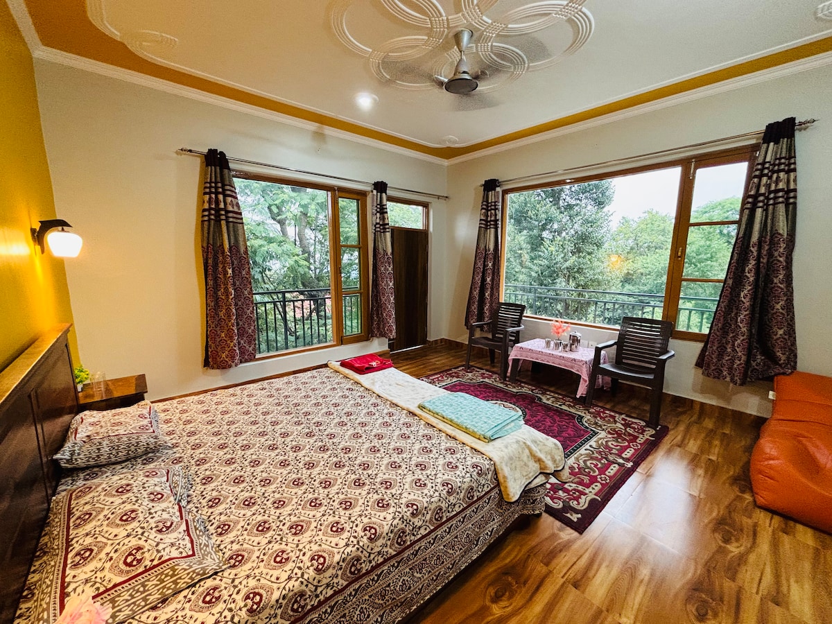 Si buscas un lugar pintoresco para trabajar/relajarte sin distracciones, «Shantam» es tu lugar ideal. Ubicado al pie de los imponentes Dhauladhars, este lugar ofrece una espectacular vista panorámica de exuberantes campos verdes con bosques de pinos en su horizonte. Este es el lugar ideal para estancias largas con tus seres queridos. Relájate en el cenador en medio de un exuberante huerto verde, cocina tu comida favorita y sumérgete en la naturaleza con tus seres queridos. Bienvenido a Shantam, la morada de la naturaleza.
