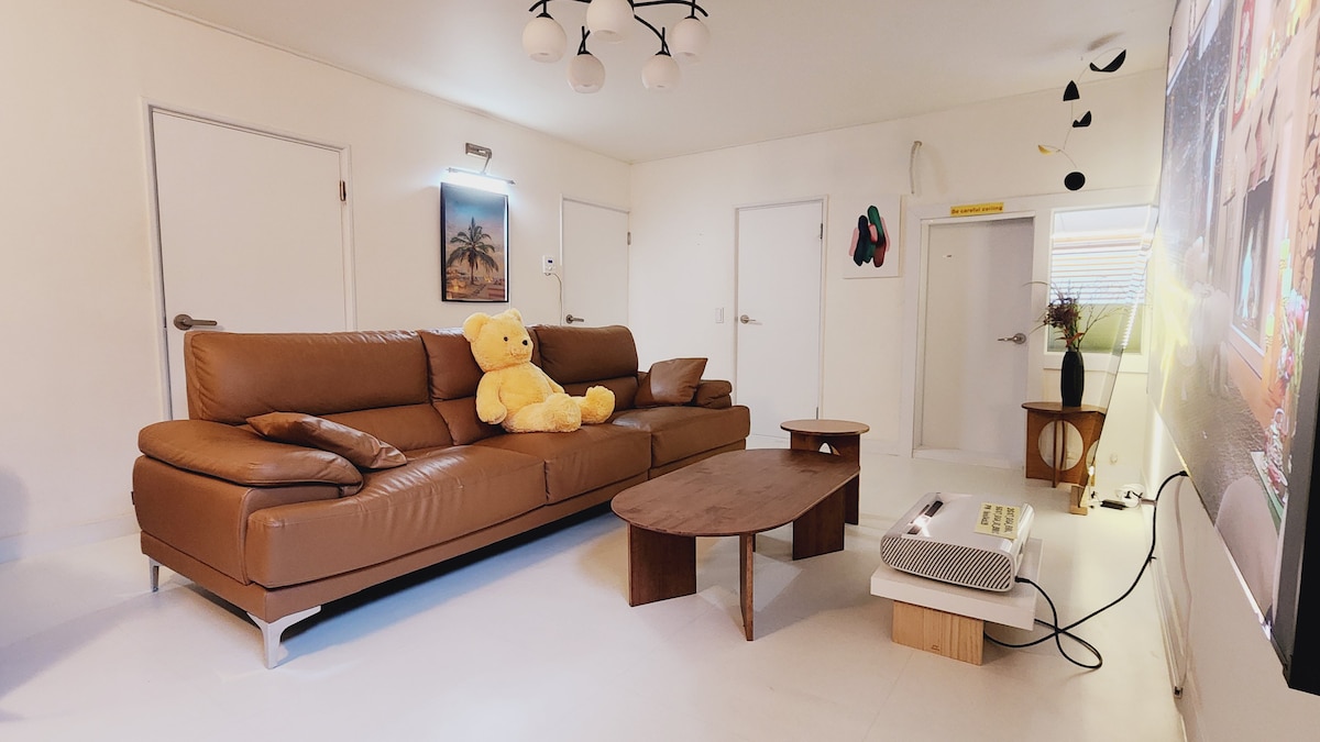 (Casa). Treehouses Se encuentra en una zona residencial tranquila en Buk Suwon. Es una casa unifamiliar llena de cálidos recuerdos del anfitrión nacido y criado. El segundo piso todavía está ocupado por mis padres. Remodelamos parte de la casa de 40 años de antigüedad, y todos los muebles de madera en el alojamiento fueron hechos a mano por mi esposo que dirige un taller de madera. Lo hemos abierto como un hogar para que muchas personas experimenten una sala de exposición de muebles y un espacio privado que también es la casa de vacaciones de nuestra familia. Suwon, que puede ser un área desconocida para los viajeros, ha sido cuidadosamente preparada para que puedas pasar un día aquí sin ningún inconveniente. ... Tanto el dormitorio principal como la sala de estar tienen ventanas orientadas al suroeste, por lo que es bonito cuando entra el sol de la tarde, pero es un alojamiento retroemocional con un ambiente muy húmedo y tenue en un día lluvioso. ☾ Un lugar donde la noche es encantadora, Esperamos que descanses cómodamente en una pesada casa unifamiliar. ⠀ ⠀ ‼