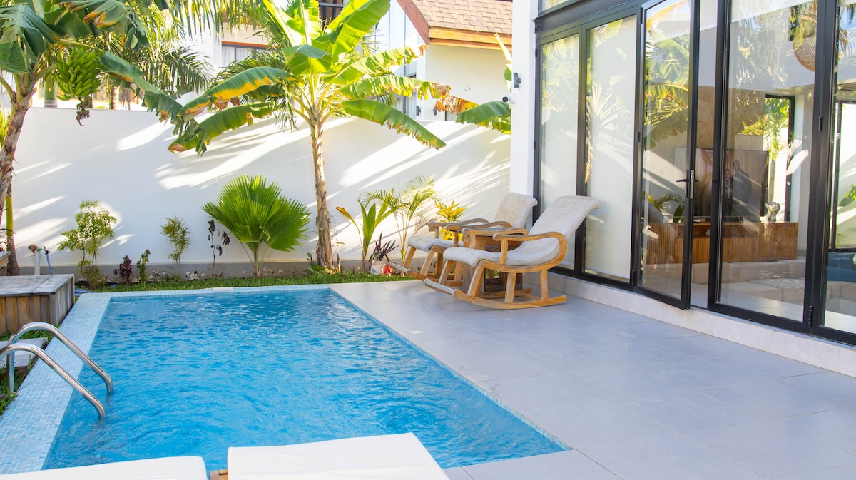 FREE Airport or Ferry or Hotel Pick-up😃 pick one, either pick-up or drop off Escape to our stunning beachfront Airbnb in Paje, perfect for up to 6 guests. Enjoy a private pool, beachside beds, and breathtaking ocean views. Designed with glass and wood walls, the villa features elegant Balinese and rattan decor, creating a serene, tropical vibe. Relax in beautifully styled interiors, cook up a feast on the barbecue. Kick back and relax in this calm, stylish space.