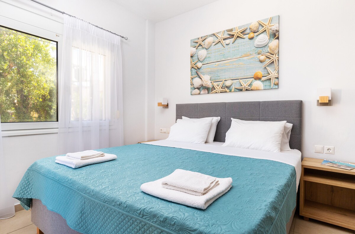 The Apartments are located in Livadia and are only 200m from the sea, while Elafonisi is only 13km away. At 450-650m there is a canteen and a local tavern. For the sea lovers, at 500m there is a pristine pebble beach, while at 5km Stomio Bay will make your afternoons most memorable. Only 7.4 km away you may find restaurants and a mini market. Continuing on, one meets the world-famous white lake, and then reaches the magnificent Elafonisi, a place that many of the world’s travellers talk about.