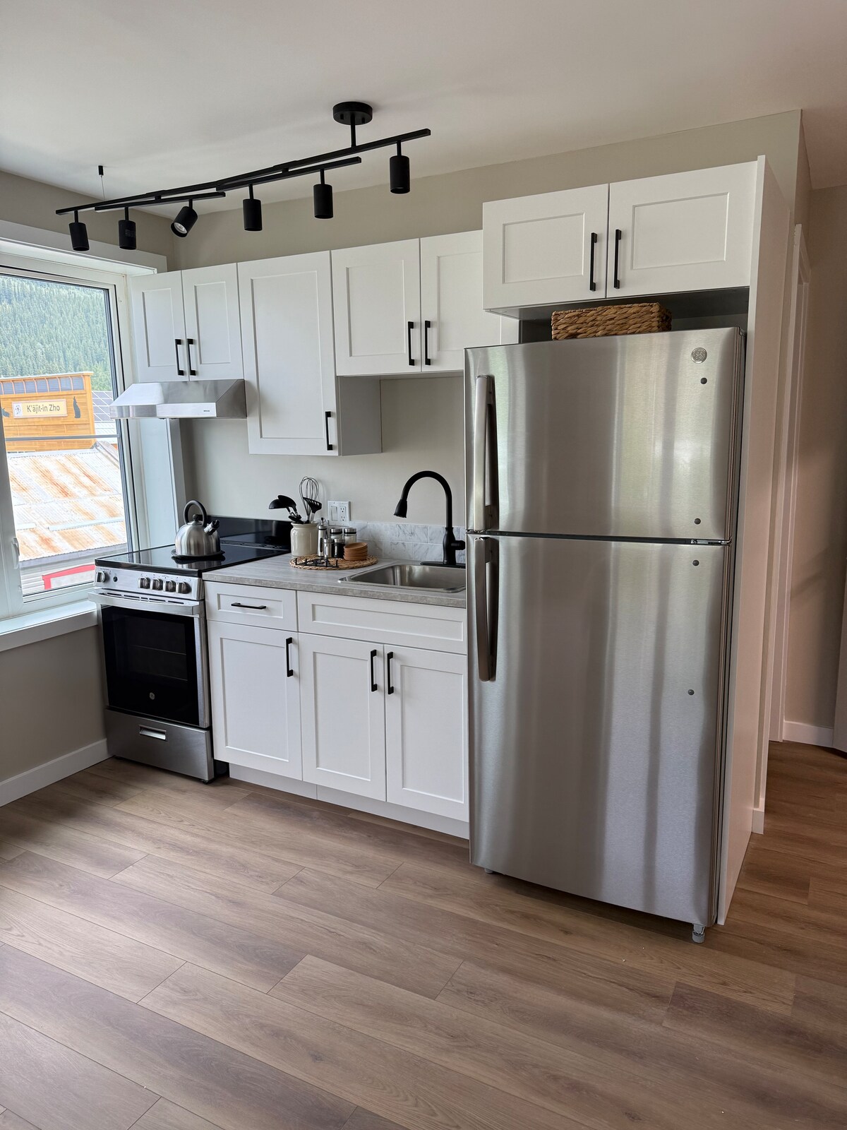 Moderno microestudio privado en el centro de Dawson City. Cuenta con una cama tamaño queen, ducha a ras de suelo, cocina completa, lavadora y secadora en suite y entrada privada. No tiene dormitorio separado. Cada estadía incluye una tarjeta de regalo de USD 20 para Riverwest Bistro, un popular café local. Ubicación céntrica, tranquila y transitable cerca de tiendas, restaurantes y el río Yukón. Ideal para viajeros solitarios o parejas que buscan comodidad, sencillez y conveniencia. Ten en cuenta que esta suite tiene wifi, pero no TV.