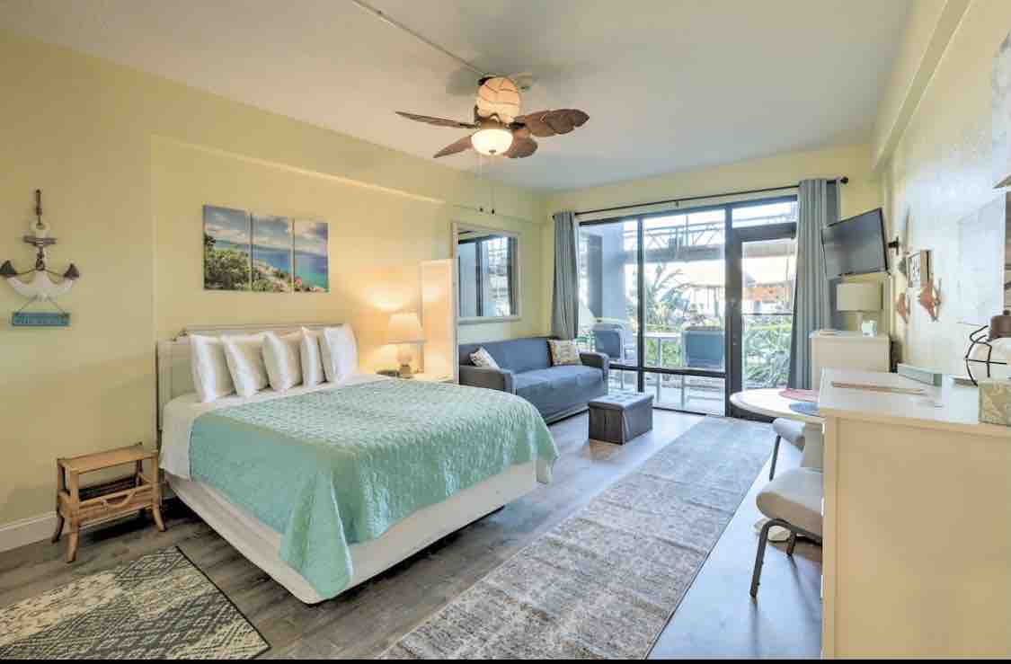 Somos uno de los Airbnb más cercanos al paseo marítimo, en la playa más famosa del mundo con una piscina abierta. Televisión de 65 pulgadas Ven a disfrutar de nuestro estudio recién amueblado con increíbles vistas a la playa desde el último piso. Somos el AIRBNB más cercano en la playa al Daytona International Speedway Con cama tamaño king y sofá cama tamaño queen. Ubicado en el centro de Daytona Beach, a poca distancia del paseo marítimo del muelle, restaurantes y Main Street. Tenemos estacionamiento GRATUITO para 1 vehículo y ofrecemos café, crema, azúcar, sillas de playa.