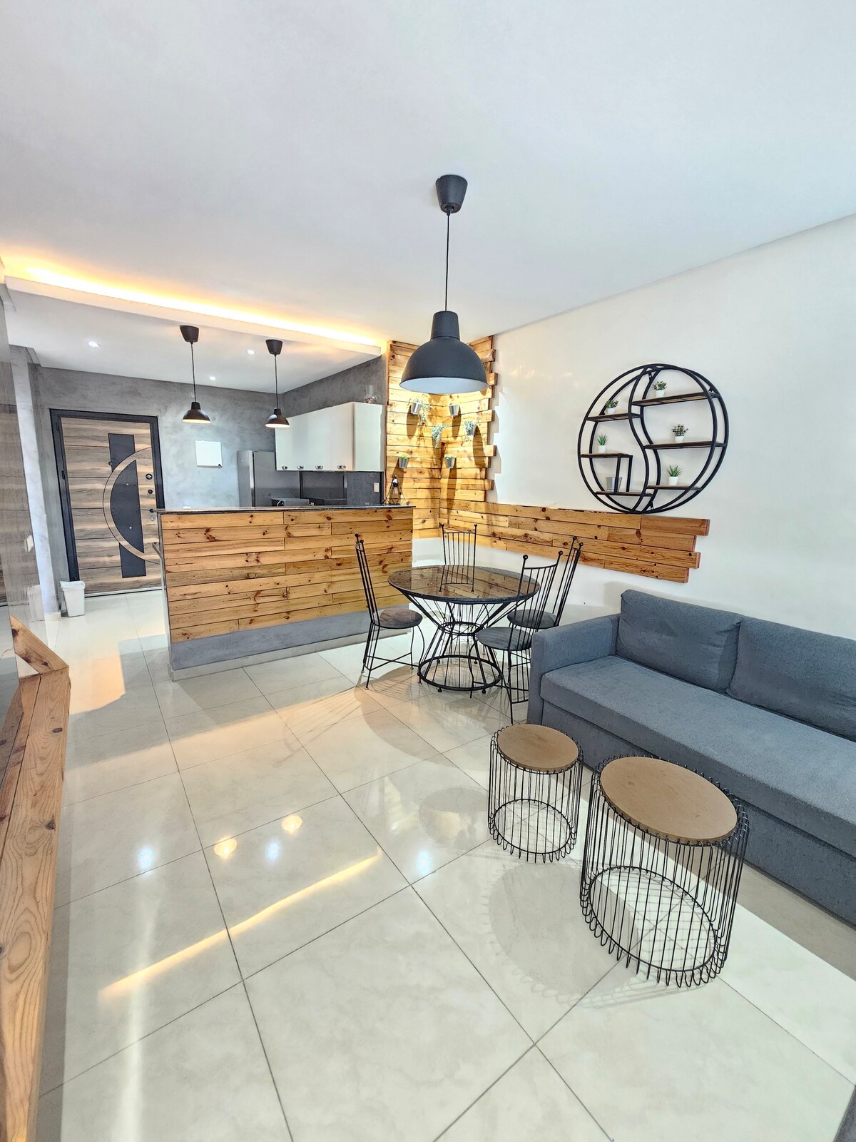 Relájate y relájate en esta acogedora casa, a pocos pasos de la playa. ¡Te damos la bienvenida a tu hogar lejos de casa! Este elegante y acogedor apartamento de 2 dormitorios es perfecto para tu próxima escapada, situado en una residencia segura a solo 5 minutos a pie de la hermosa playa de Agadir. Ubicado en el corazón de la bulliciosa zona turística, te encontrarás rodeado de atracciones locales, tiendas y deliciosas opciones gastronómicas.