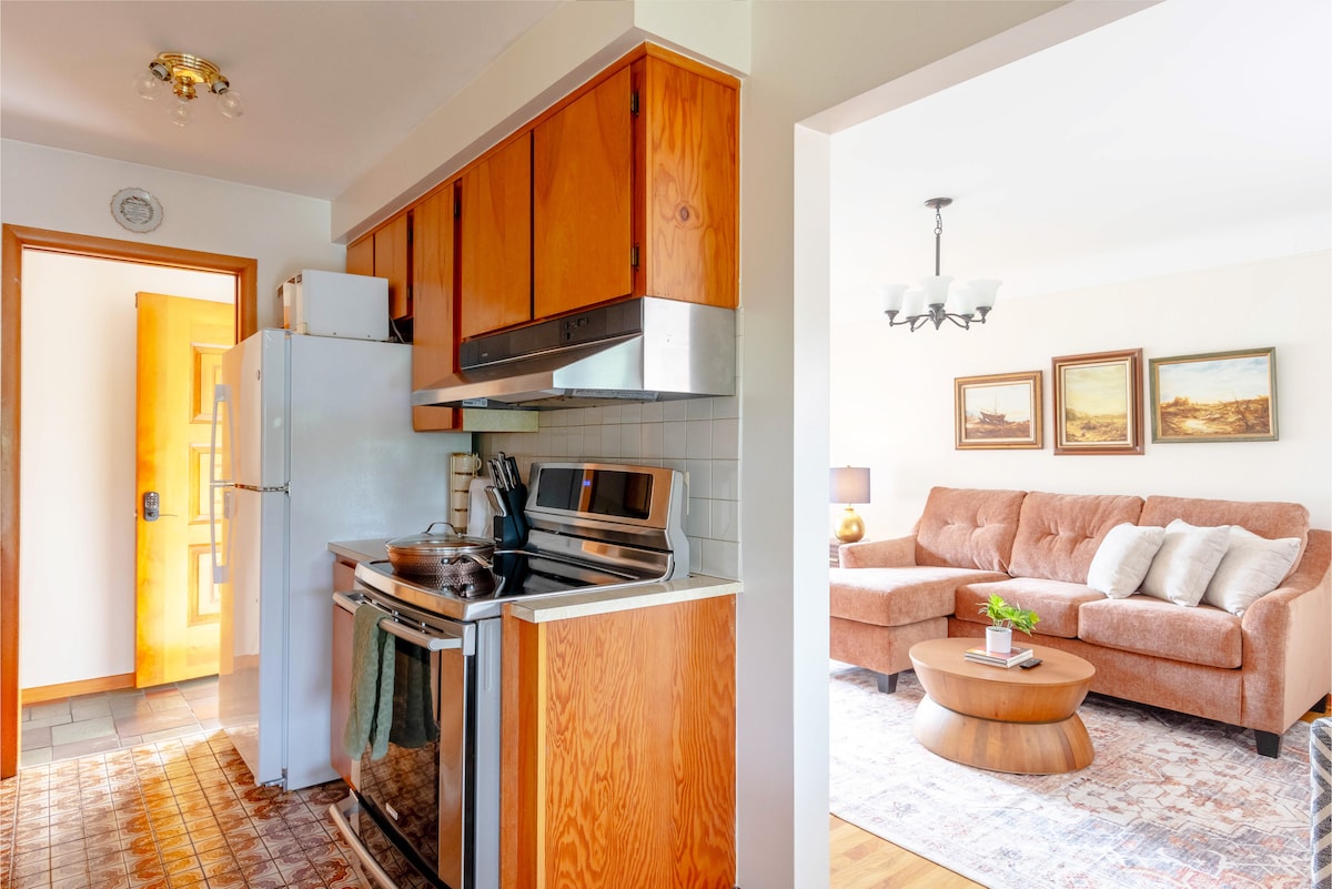 ¡Acogedor apartamento sótano completo con 2 dormitorios y entrada privada! ¡Te damos la bienvenida a esta encantadora casa céntrica en un barrio seguro y tranquilo! Este apartamento bien decorado es perfecto para parejas o familias de 4 personas, con 2 camas tamaño queen. Este apartamento tiene un baño, una cocina bien equipada, una acogedora cafetería, comedor, TV para tu entretenimiento y una lavadora y secadora totalmente dedicadas. Para tu información, el precio se reduce en comparación con un anuncio similar para reflejar que el techo puede ser bajo para los huéspedes altos.