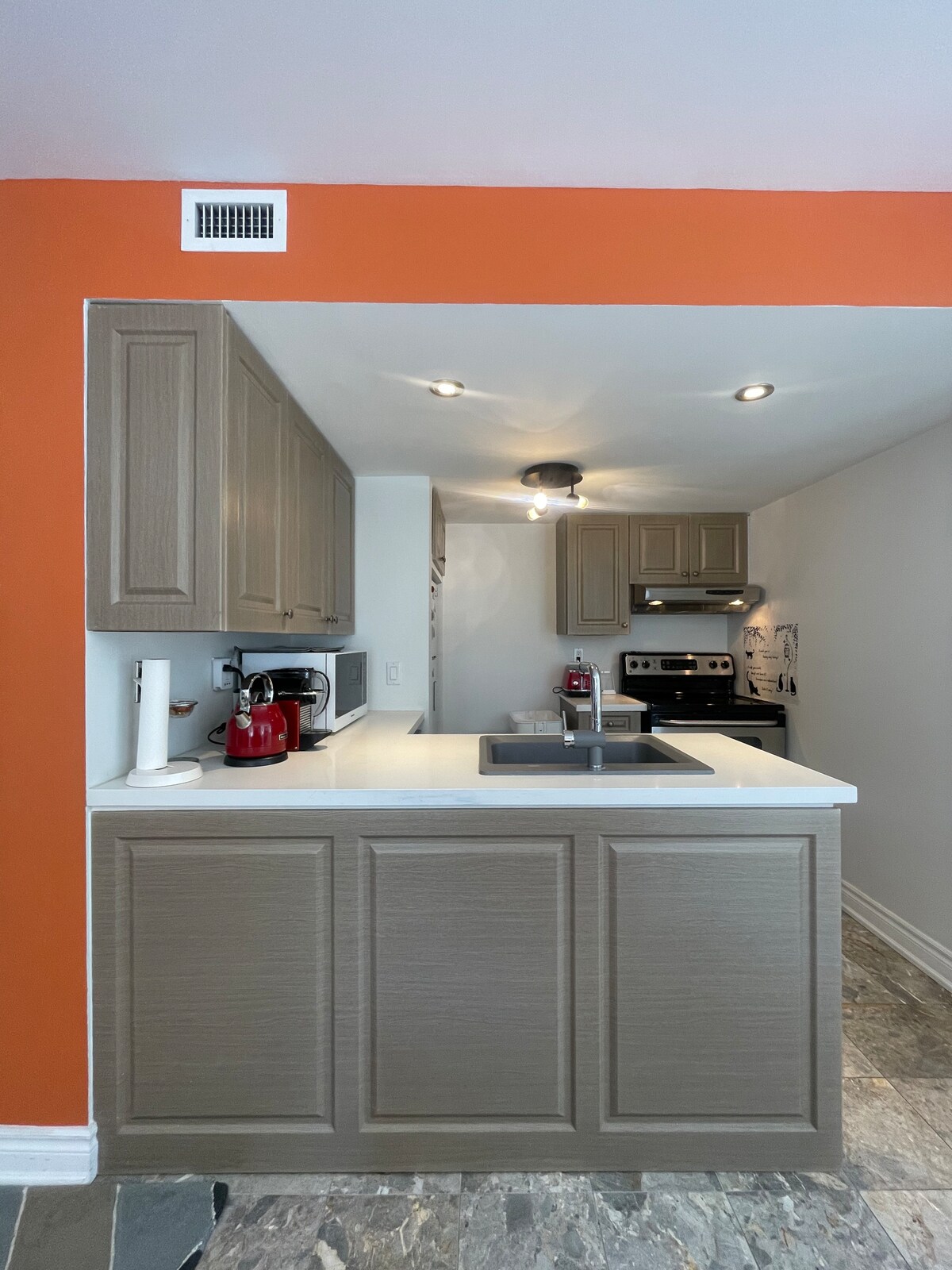 Disfruta de un apartamento de 1 dormitorio recién construido, diseñado profesionalmente y espacioso en el sótano en East York Toronto. Convenientemente ubicado cerca de Danforth, Woodbine Beach, parques y senderos, el apartamento está a un corto trayecto en autobús/metro o a 15 minutos en coche del centro de Toronto. Independiente y espacioso, ofrece una cocina totalmente equipada, nuevas instalaciones de lavandería, una cama tamaño queen, amplio espacio de almacenamiento y mucha luz natural.