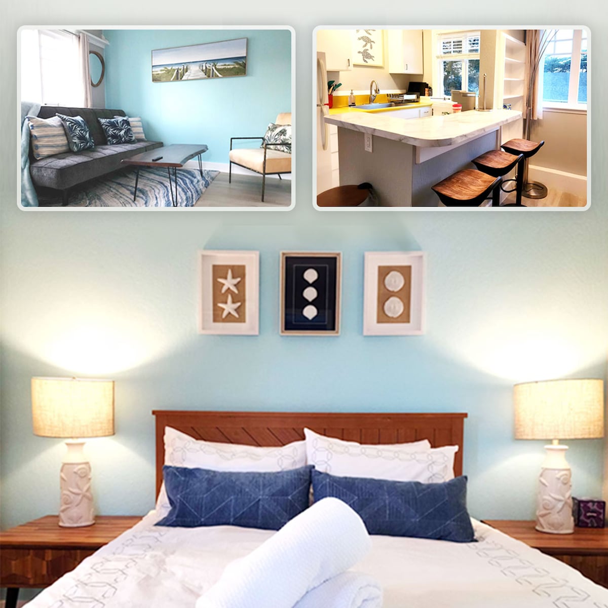 Easy access to everything the Monterey Peninsula has to offer - Located in Pacific Grove with easy access to Pebble Beach/17-Mile Drive, Carmel-by-the-Sea, and Big Sur. Monterey Bay Aquarium, golf, surfing, and hiking are all close by. Laundry room, gorgeous bathroom, and fully stocked kitchen are some of the wonderful features. Off-street parking. High-end linens and comfy beds await your arrival. Trader Joe's, Safeway and 12+ restaurants in walking distance. Professionally cleaned.