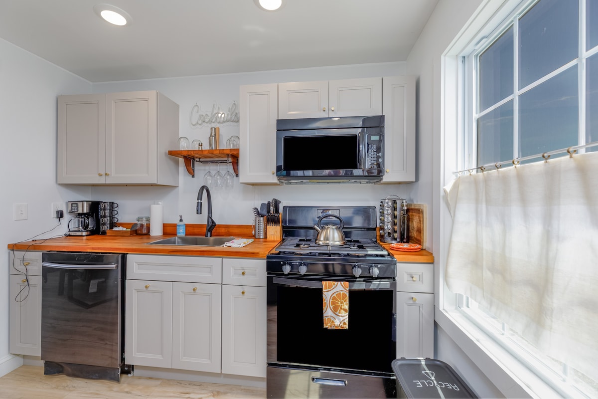 ¡Esta casa de campo cuidadosamente restaurada, ubicada en una propiedad frente a la playa, es la casa de vacaciones de tus sueños! Pasa tus días en una aventura en kayak o pescando junto a la playa. Observa las impresionantes puestas de sol a los pasos de tu puerta trasera, luego contempla las estrellas desde tu suntuoso jacuzzi o crea recuerdos alrededor de una hoguera crepitante. Desde el baño tipo spa completo con lluvia, dirígete al televisor cinematográfico 4K de 50pulgadas, puedes disfrutar de todos los servicios cuando llegues a casa para descansar después de cada día increíble.