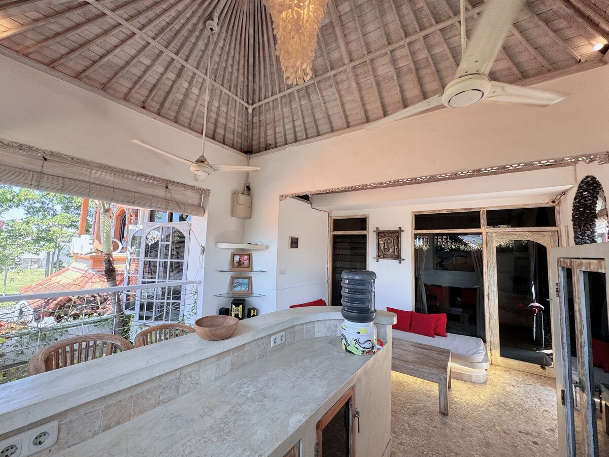 Una hermosa y tranquila villa con dos cómodos dormitorios y un gran sofá cama en la sala de estar. La villa cuenta con una piscina privada y un balcón para relajarse. La cocina está totalmente equipada con utensilios de cocina y comedor. Todas las habitaciones tienen aire acondicionado, lo que hace que tu estancia sea cómoda y espaciosa. Nuestra villa está ubicada en el corazón de Sanur. Cerca de supermercados, restaurantes, la playa y las atracciones turísticas de Sanur, ¡es perfecto para unas vacaciones relajantes en Bali!❤️
