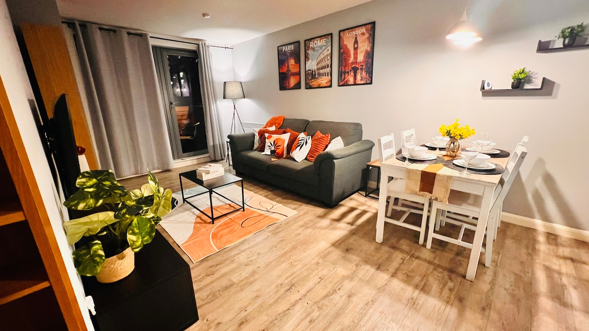 ¡Disfruta de este elegante apartamento junto al canal en el corazón de Birmingham! Perfecto para parejas y amigos, familias con niños y padres que visitan a estudiantes, este espacio te permite explorar la ciudad y luego regresar para relajarte, ya sea socializando en la sala de estar de planta abierta o retirándote a dos dormitorios y dos baños para mayor privacidad. Camina hasta la vida nocturna, los estadios y las principales atracciones como Legoland o Sea life. Disfruta de un registro de entrada y salida flexible y de un aparcamiento seguro en la propiedad para que todo sea más fácil.