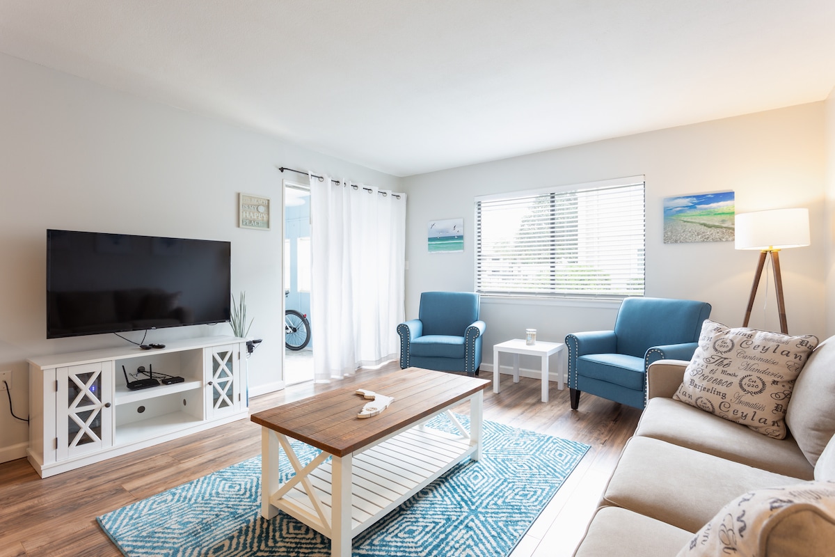*** Servicio de playa en nuestra playa privada para 2 incluidos* *** Un condominio estudio bellamente decorado con capacidad para 4 personas cómodamente. Incluye una cama tamaño queen y un sofá cama tamaño queen con colchón de espuma viscoelástica. Sin mencionar una barra de desayuno y un televisor de 55 pulgadas con sonido envolvente. Puedes pararte en la terraza trasera y ver las vistas de las playas de arena blanca azucarada que están justo enfrente de nuestro alojamiento. Servicio de playa en nuestra playa privada para 2 personas incluido de marzo a octubre.