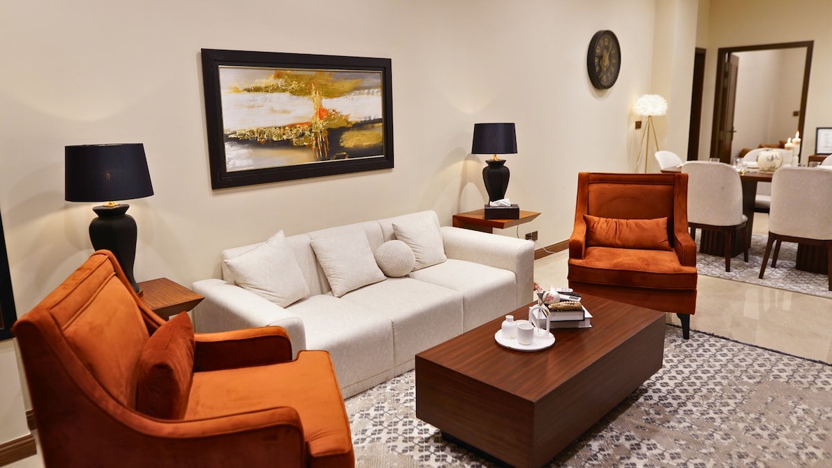 Bienvenido a The Sapphire, un lugar donde la tranquilidad se une a la elegancia. Con una amplia sala de estar, un acogedor dormitorio y una cocina totalmente equipada, te sentirás como en casa. Estamos deseando recibirte en Sapphire, donde cada detalle está diseñado pensando en tu relajación. Se encuentra en la manzana Bahria Heights 1 D con seguridad las 24 horas, los 7 días de la semana y muy cerca de cafeterías y restaurantes. Una farmacia, un cajero automático, un gimnasio y una piscina están a un tiro de piedra del alojamiento.