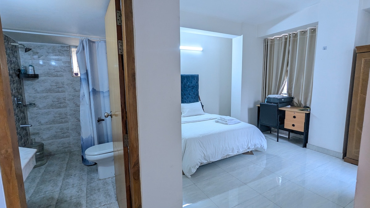 Lujoso apartamento de 3 dormitorios con camas ortopédicas europeas, sábanas frescas, toallas, aire acondicionado, escritorios, balcones privados y baños privados con duchas de agua caliente. Disfruta de una elegante sala de estar con TV y una moderna cocina totalmente equipada con microondas, tostadora, nevera y lavadora. Ofrece Wi-Fi de alta velocidad, respaldo de energía y acceso a la azotea compartida, sala de oración, parrilla para barbacoa y sala de juegos. Ubicado en North Banani, seguro, sereno y verde. Ideal para expatriados, familias, viajeros de negocios y estadías largas.