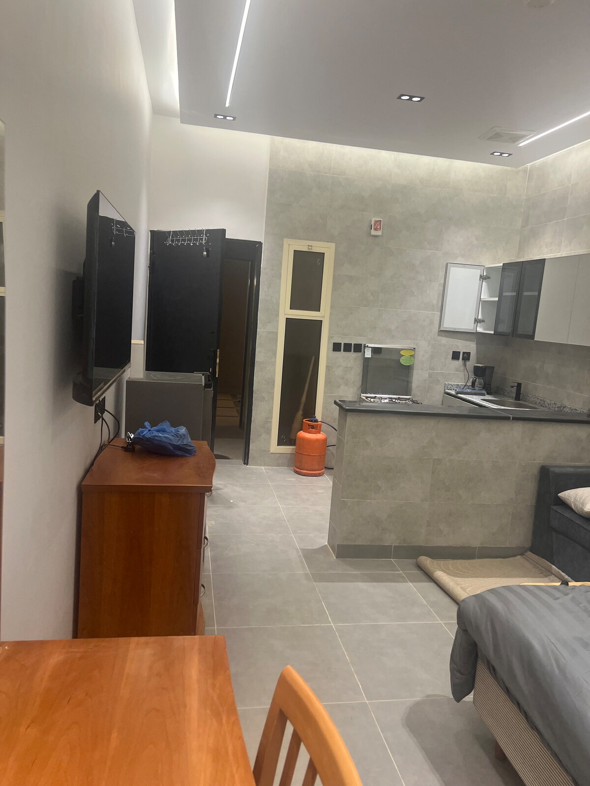Apartamento de un dormitorio con una cama principal, una sala de estar, una cocina y un baño. Está en medio de Muzahmiya Detrás del centro comercial Al Muzahmiya. En medio de los servicios TV inteligente de pantalla plana Internet de alta velocidad Posiciones sombreadas y privadas Auto entrada Nuevo edificio y muebles nuevos y cómodos Esto hace que la experiencia del huésped sea especial y tranquila.