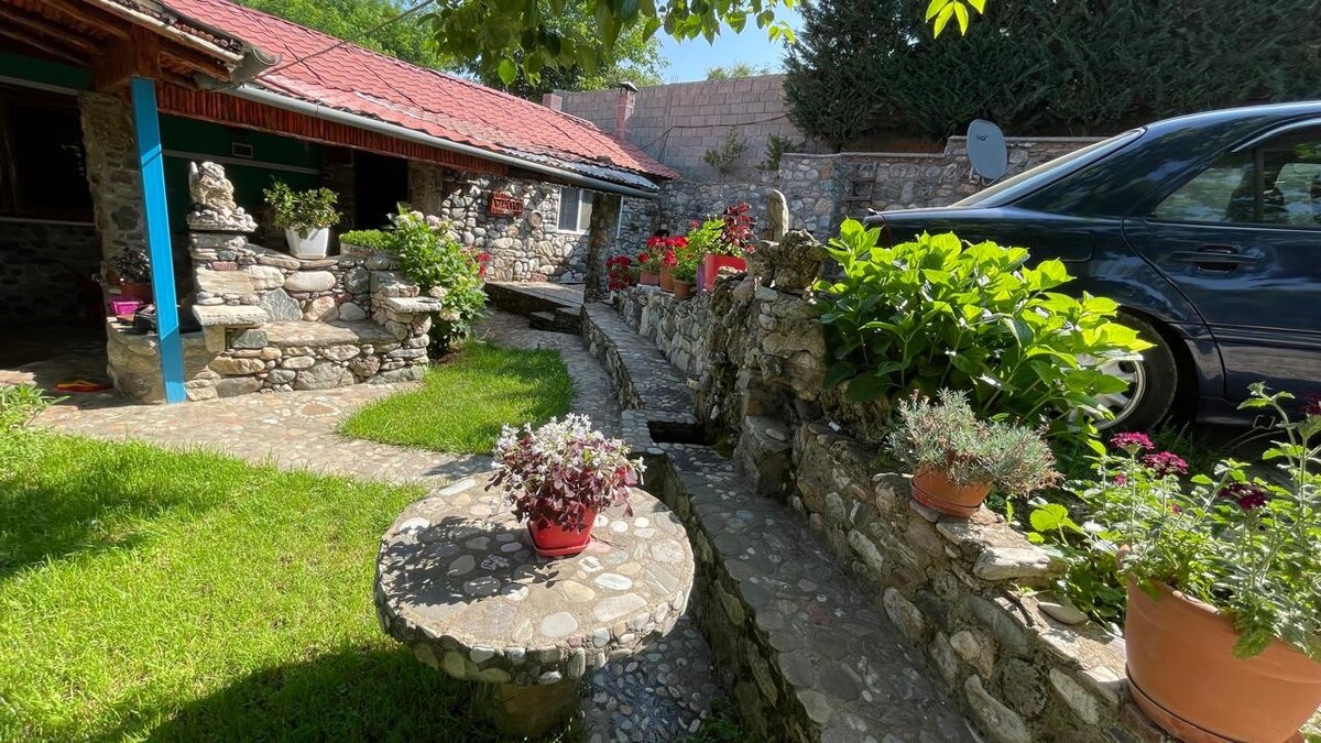1. Casa de piedra auténtica, construida a mano. Construida a mano por el propietario con piedra natural, esta casa de huéspedes ofrece una estancia única y acogedora. Rodeado de vegetación, es el lugar perfecto para relajarse y disfrutar de la cálida y tradicional hospitalidad albanesa.