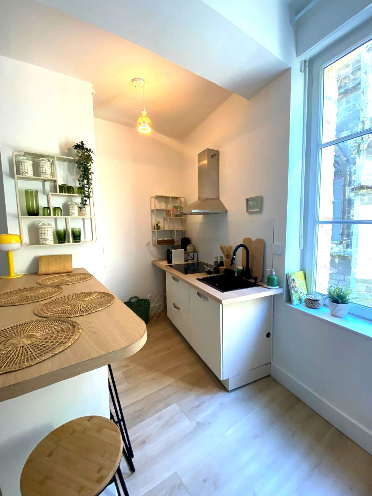 Apartamento de dos habitaciones, situado al lado de la Iglesia de San Jacobo, en el corazón del centro de la ciudad de Dieppe. El apartamento está idealmente situado para disfrutar de Dieppe a pie: el puerto y sus restaurantes están a 300 m, la playa a 600 m, la estación de tren a 650 m, la calle mayor peatonal y todas sus tiendas a 100 m, el castillo a 700 m, todos los comercios cerca del edificio y justo debajo del edificio una panadería. Todos los sábados por la mañana, hay un mercado muy bonito al pie del edificio.